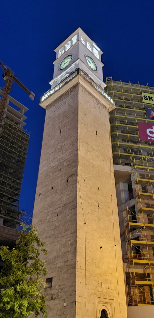 The capital of Albania is where we began our trip a month earlier and where we would end it as well. After dropping the car off and checking into the hotel, we were off to explore the city. Tirana is located in a valley in central Albania, and is home to nearly 600,000 people. It is busy and there is a lot of hustle and bustle. We stayed near Skanderbeg Square, which is the cultural center of the city, so that is where we walked to first. As it was already evening when we arrived, our first order of business was dinner. We ate at a burger restaurant that served German beer, and after we finished we saw some of the sites on the Square; the 18th century clock-tower:
