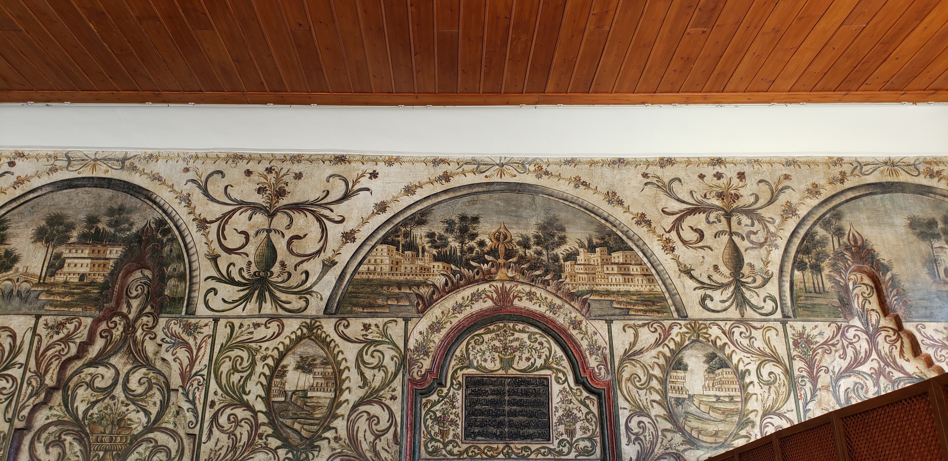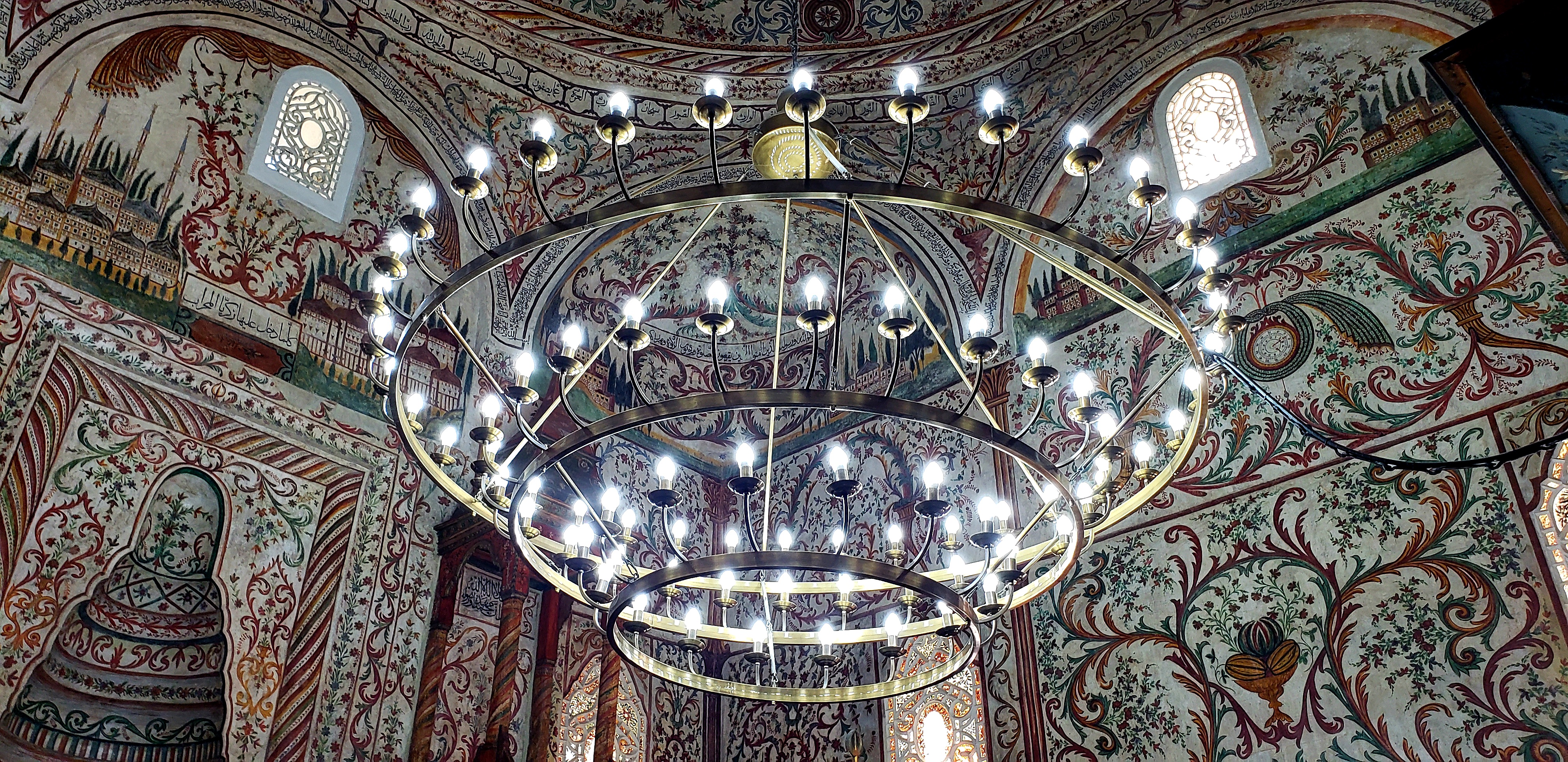 Our last stop that day was inside the Et’hem Bej Mosque, which the day before we saw from the outside. It has a large entryway but a small room inside the mosque. The ceiling is exquisite, and we sat and talked quietly as we rested and observed all the intricate details of the mosque.