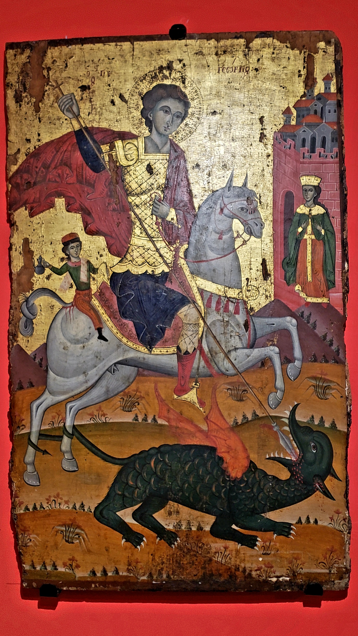 With red painted walls, there was an exhibit dedicated to Orthodox Art, with many pieces taken from closed churches around the country and displayed here in the museum.
