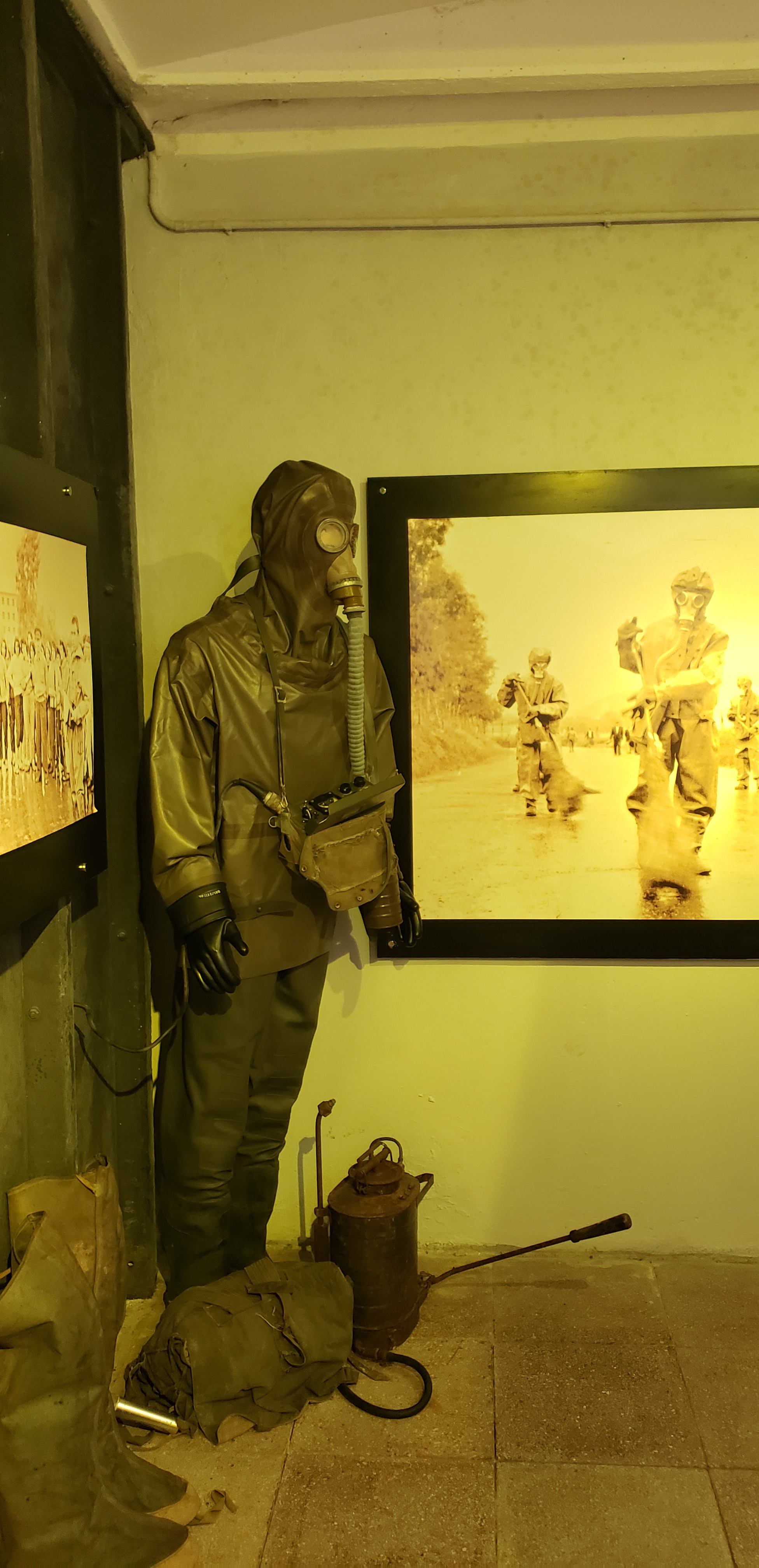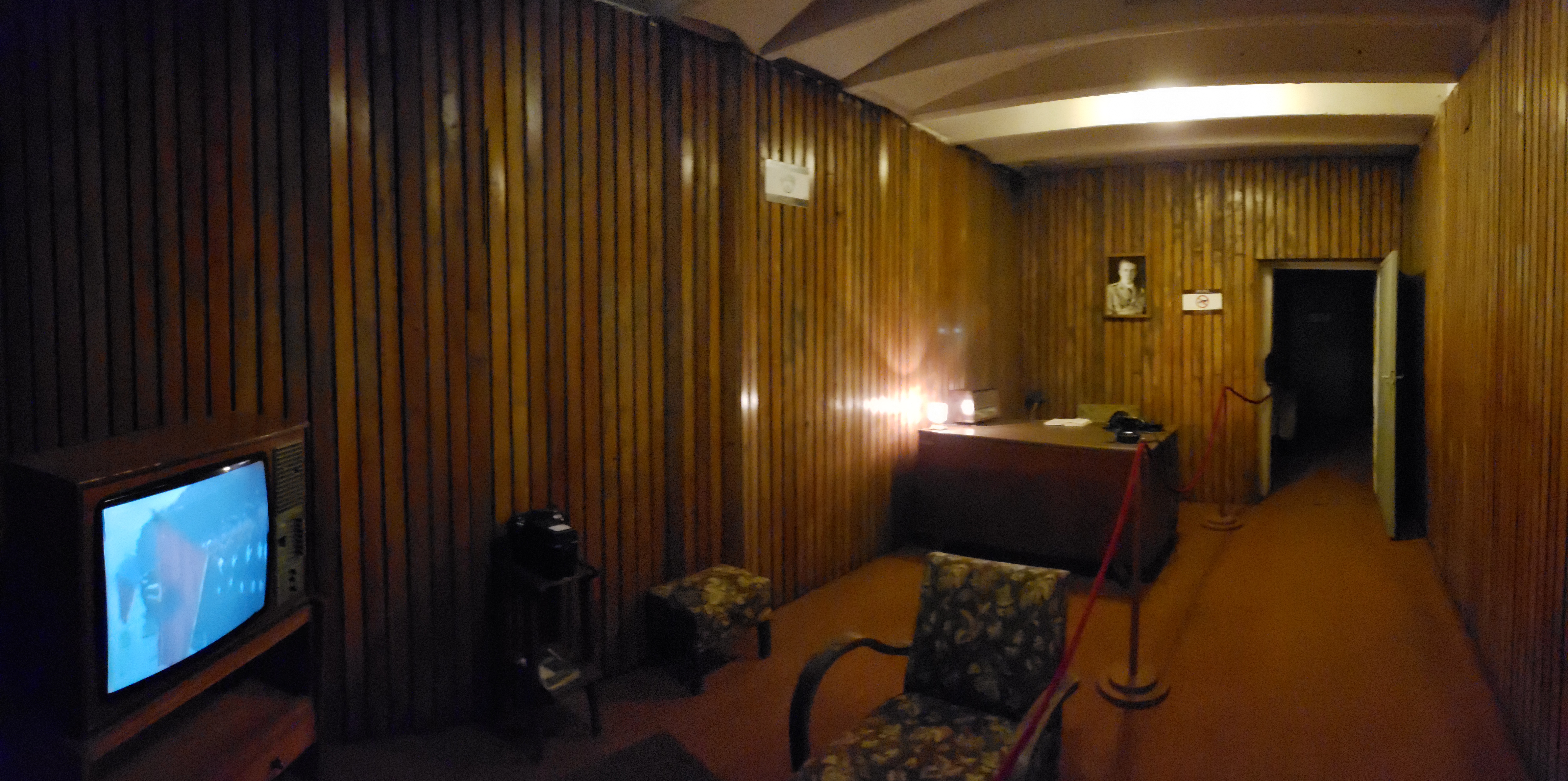 We saw offices and meeting rooms and even a theater inside the many, many, roomed underground bunker, as well as long and creepy hallways. There was also a soldier’s room and gas masks worn by soldiers (and horses). Being underground was a bonus due to a colder temperature; much needed on this really hot day.