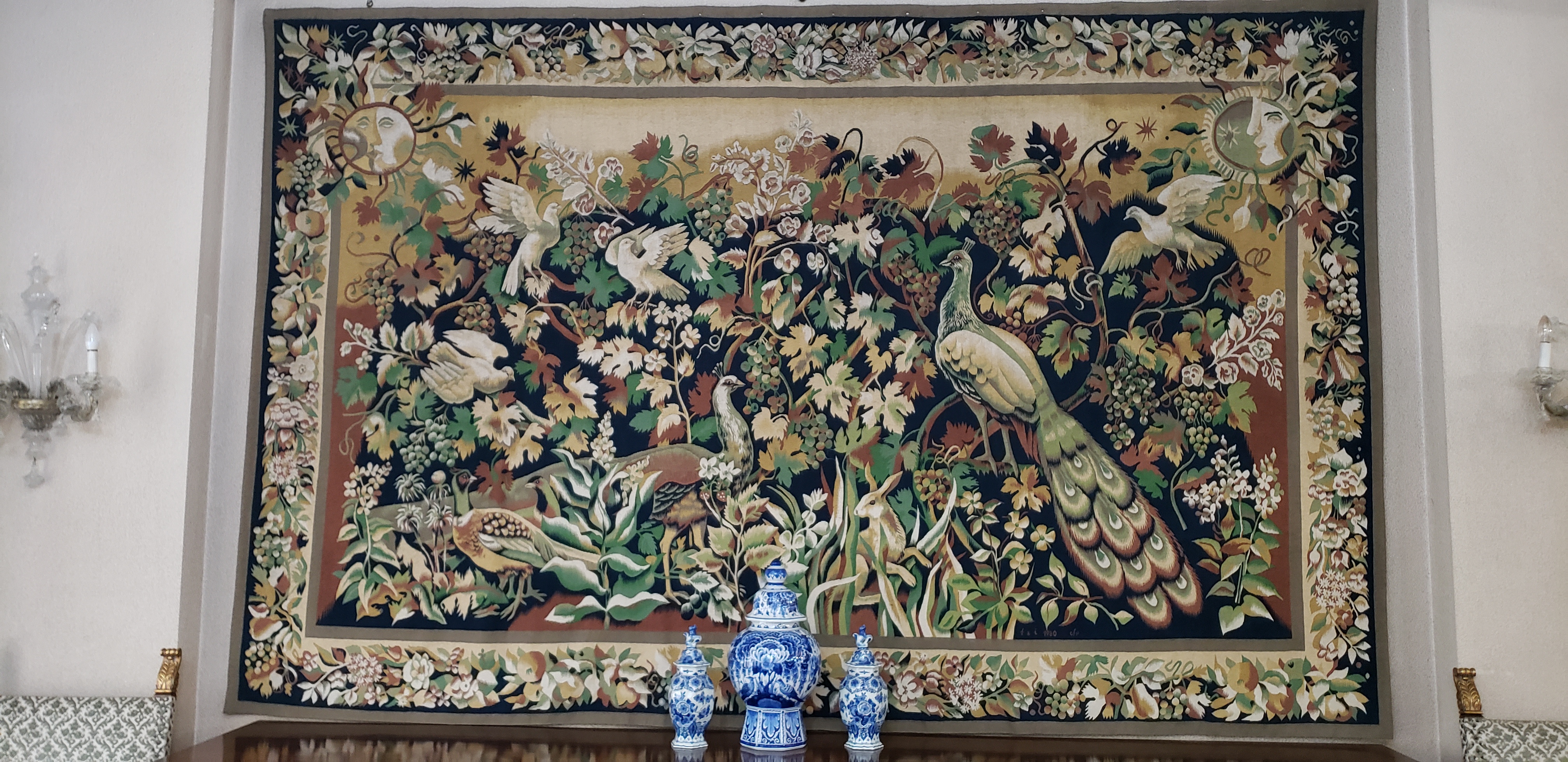 The house was extended/added-onto in the 1970s, and it was cool to see how the 60s style gave way to that of the 70s. As we saw the private bedrooms, meeting rooms, and each kids’ bedrooms, then we moved to the indoor atrium and mosaic fountains (what?!?).