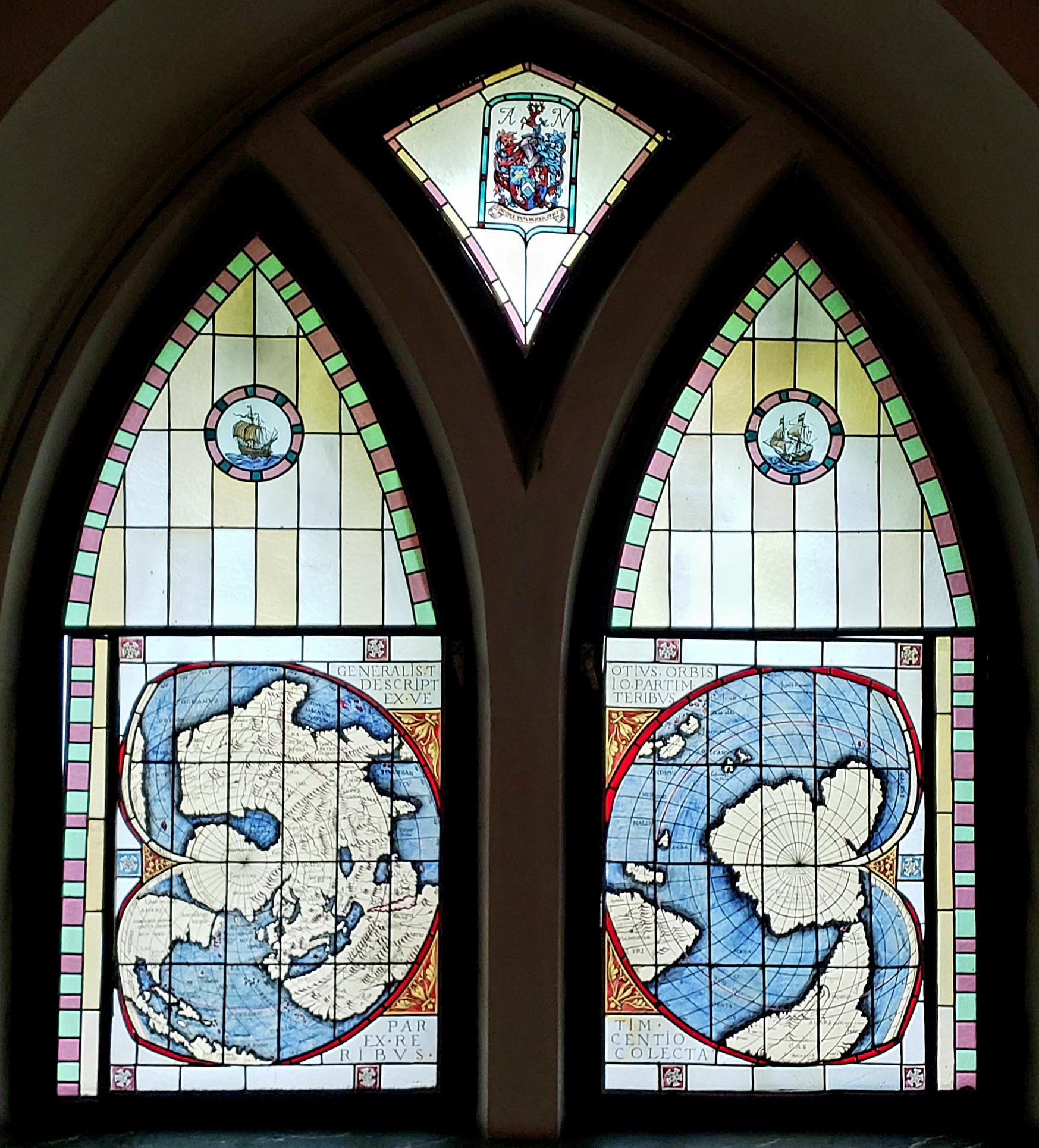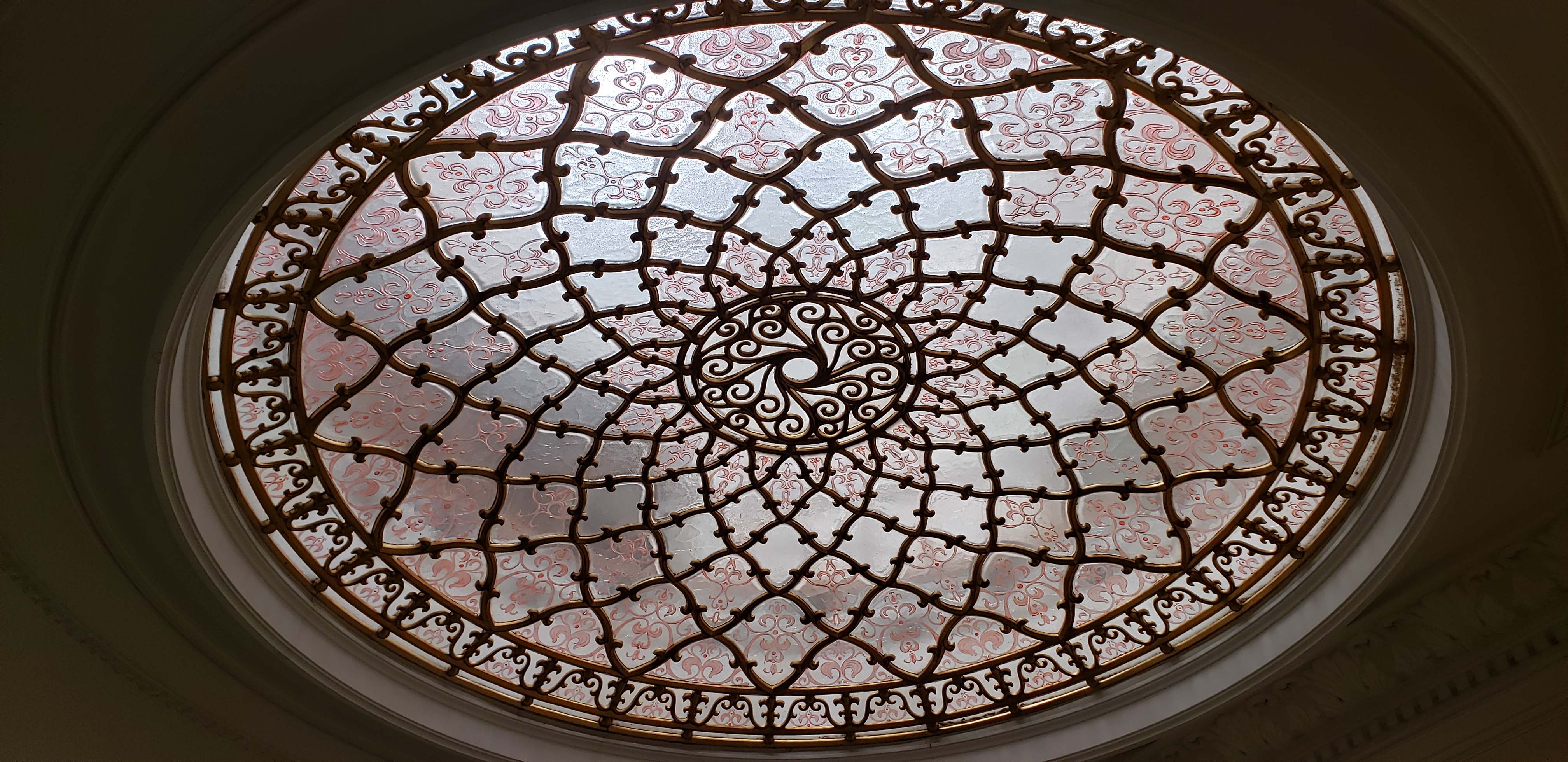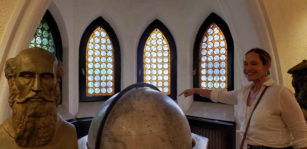 We next found ourselves at the Muzeul Național al Hărților și Cărții Vechi, or the National Museum of Maps and Old Books. We had never been to a museum like this, and it was fascinating. Located in a 1920s villa, the museum provided a history of map making, had many maps dating back from the 1500s to today, statues to the most important people that helped map making advance in the world, beautiful stained glass, cool furniture pieces, and multiple painted ceilings.