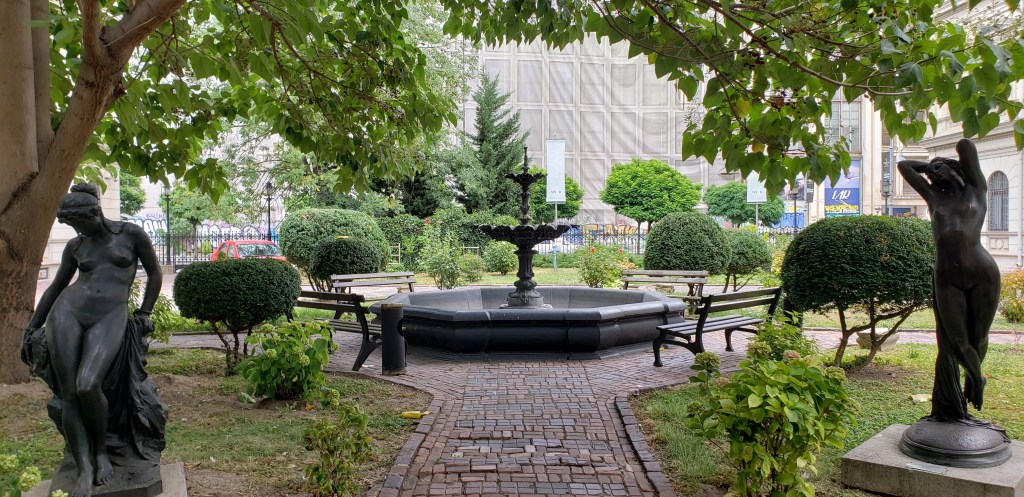 As we left another fun museum filled with great art in Bucharest, we saw the statues that frame the fountain in front of the building.
