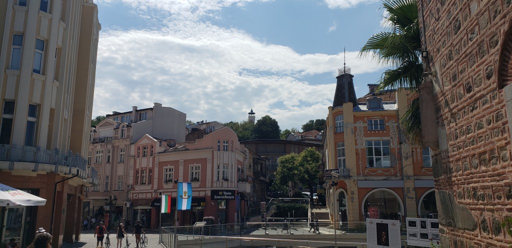 We found a place to sit nearby, and, after searching (the internet comes in handy once again), booked another hotel about ten minutes away. We got in a taxi, and took the short ride; it was located near Old Town Plovdiv, and that meant up a hill on cobblestone streets. The taxi driver huffed and puffed, and we did not totally understand why, but he dropped us off, doubled the fair on the meter (from 5 to 10 Bulgarian Lev, which is from $2.50 to $5), and helped us unload our bags.