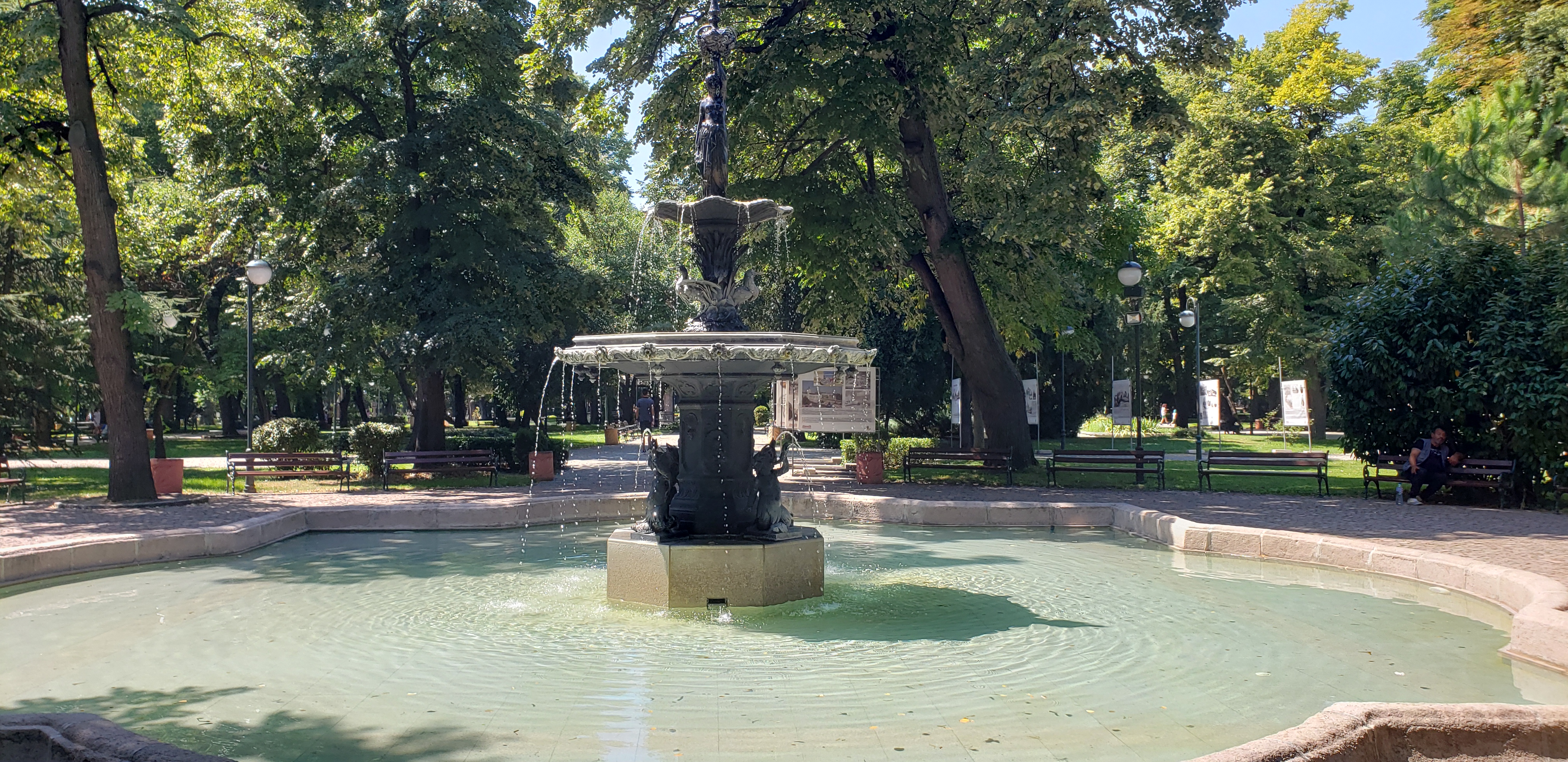 The next morning we walked to the Tsar Simeon Garden, originally from 1892, which is well manicured, has a big pool (though not for swimming), lots of pretty flowers and benches to sit, and a fountain (The fountain to the Fertility Goddess Demetra) that dated back to 1892.