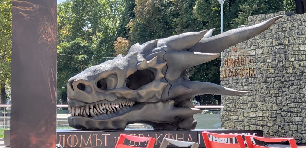If you look closely at the upper left, you may notice what appears to be a large dinosaur bone skull. Well, it actually is a dragon’s skull, as when we were in Plovdiv the new Game of Thrones show had just come out, and more people were taking pictures with the dragon skull than the Roman Forum (and it’s hard to blame them, the dragon skull is well done).