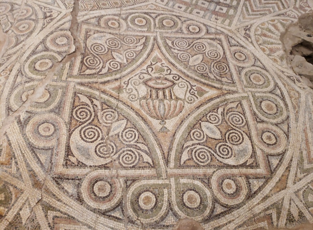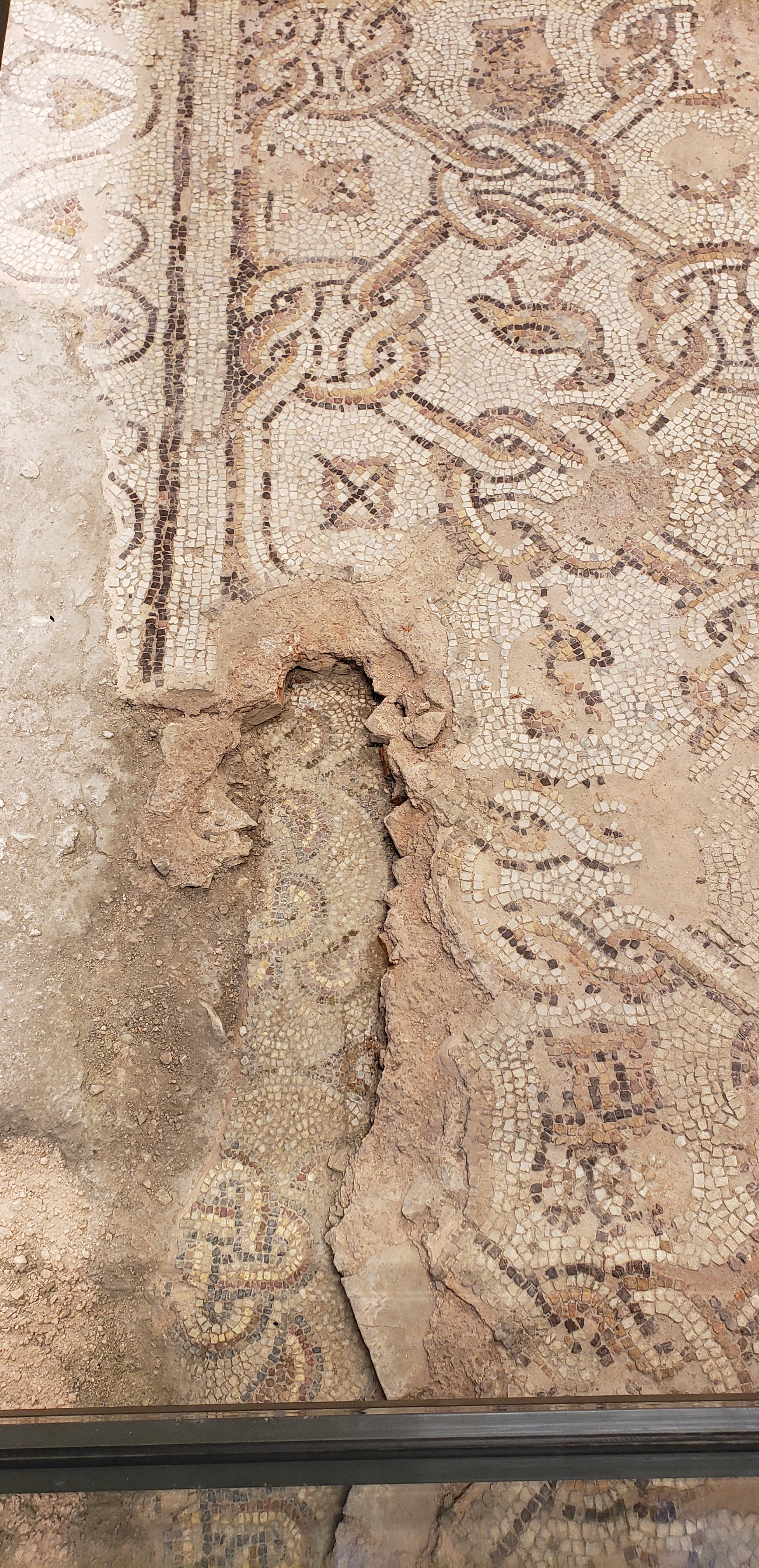 The restorers of the mosaics did an excellent job; the pictures above do not do justice to the vibrant colors still present; but the patterns and detail of the original makers still shine through. If you look closely at the next group of pictures, you can see the top layer of Christian mosaic and the bottom layer of the Pagan one.
