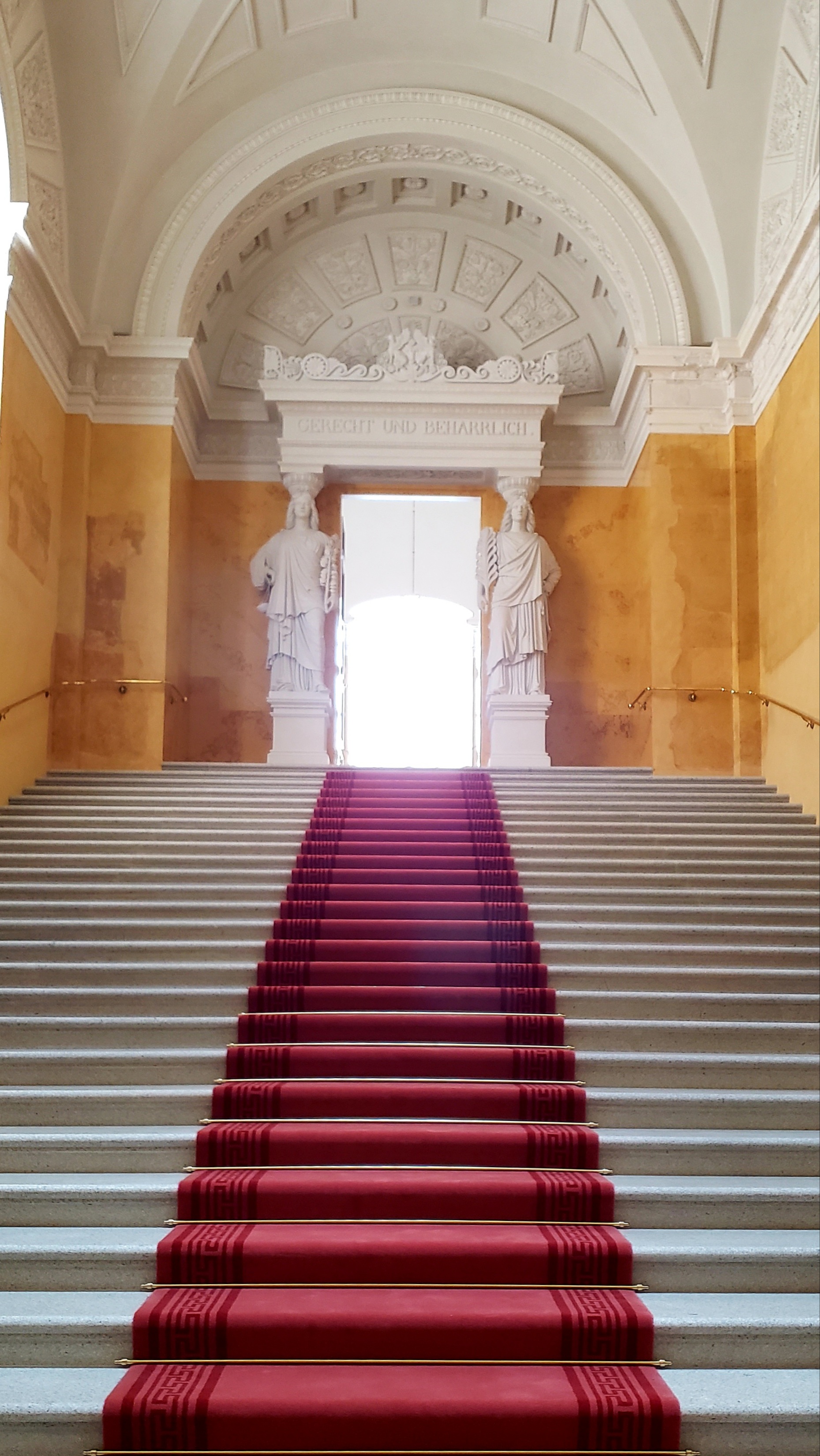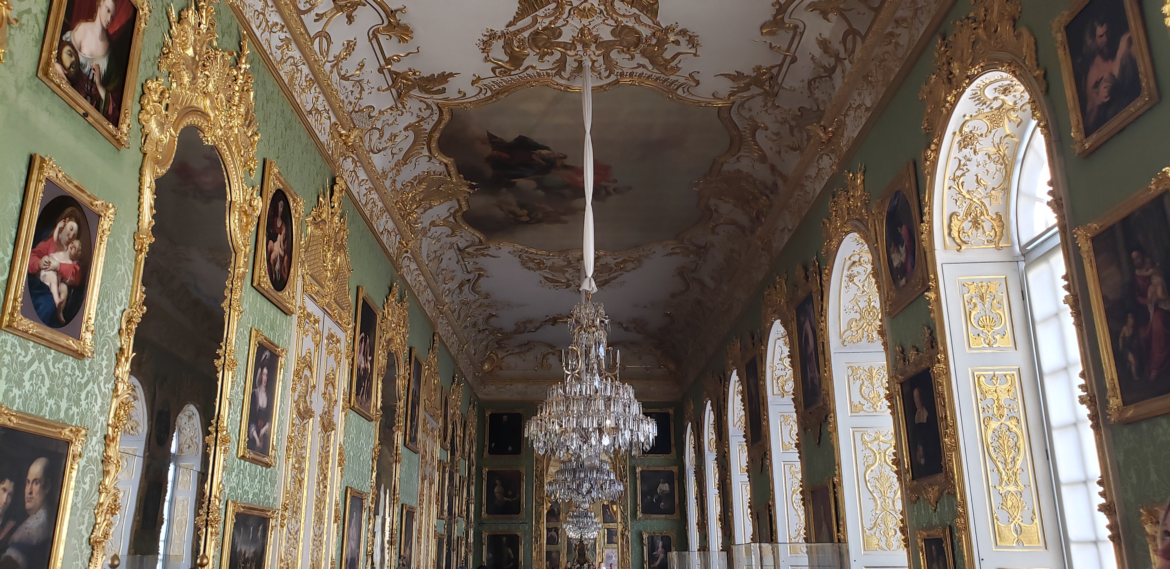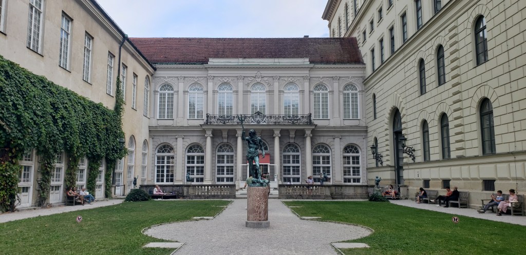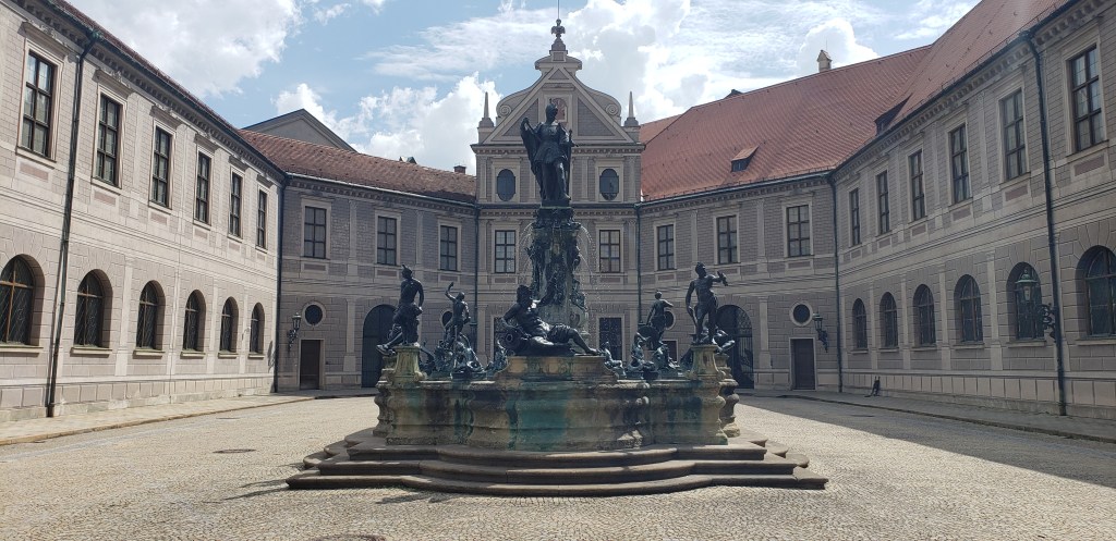 After a two-scoop gelato lunch, we went looking for the Munich Residence Palace. The Munich Residence Palace is also on the Odeonsplatz, however, it is somewhat confusing to find the entrance. We started at the back of the main building (which we figured out later) but at least there was some shade (it was super sunny that day) and some multi-colored flower gardens along with streetlamp lined paths. Then past a fountain and a large courtyard, but still no entrance.