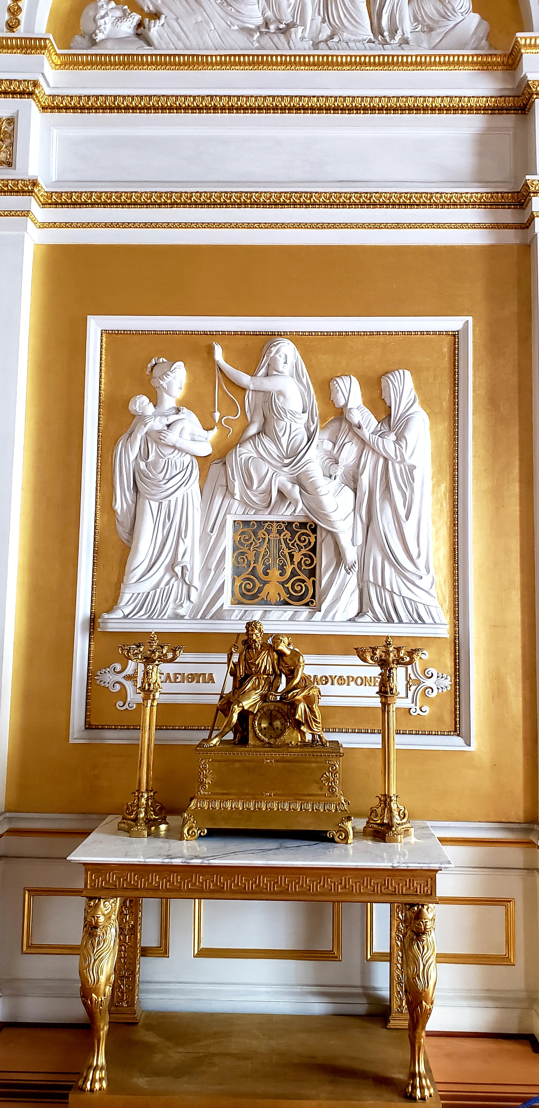 We continued the self-guided audio tour, through countless rooms with some of the most beautiful tapestries we had seen, cool furniture I’d like to have in my (imaginary) house, sculptures and finely painted ceilings; it was a bit overwhelming after a couple hours. Still, not to be missed. Here are pictures of just some of the rooms, staircases, ceilings, chandeliers, furniture, and much more that we saw on our visit.