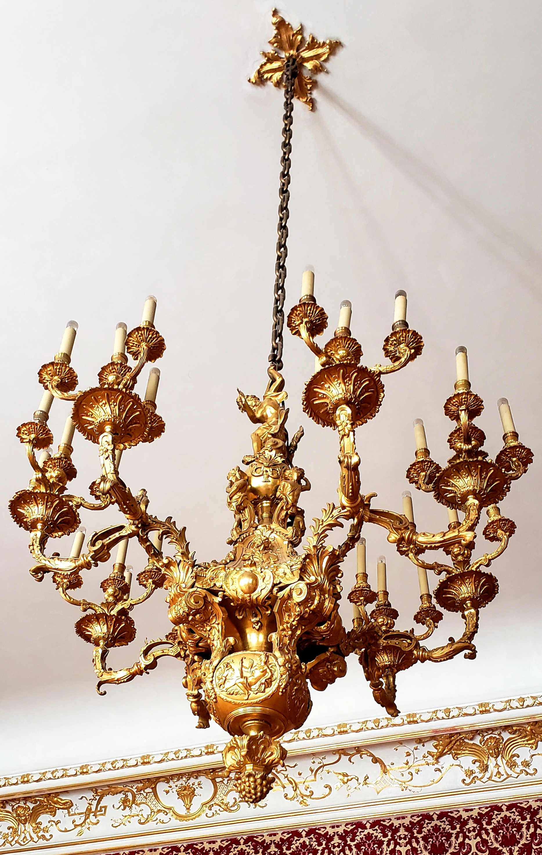 The ticket agent inside said there was a cheaper ticket if we wanted to visit the Residence Museum, and Treasury, so we asked how long it would take to see them all (a few hours) and decided we had enough time before we had to get back to the hotel to get ready for our evening plans. In the entryway to the theater there is a peacock chandelier worth appreciating.