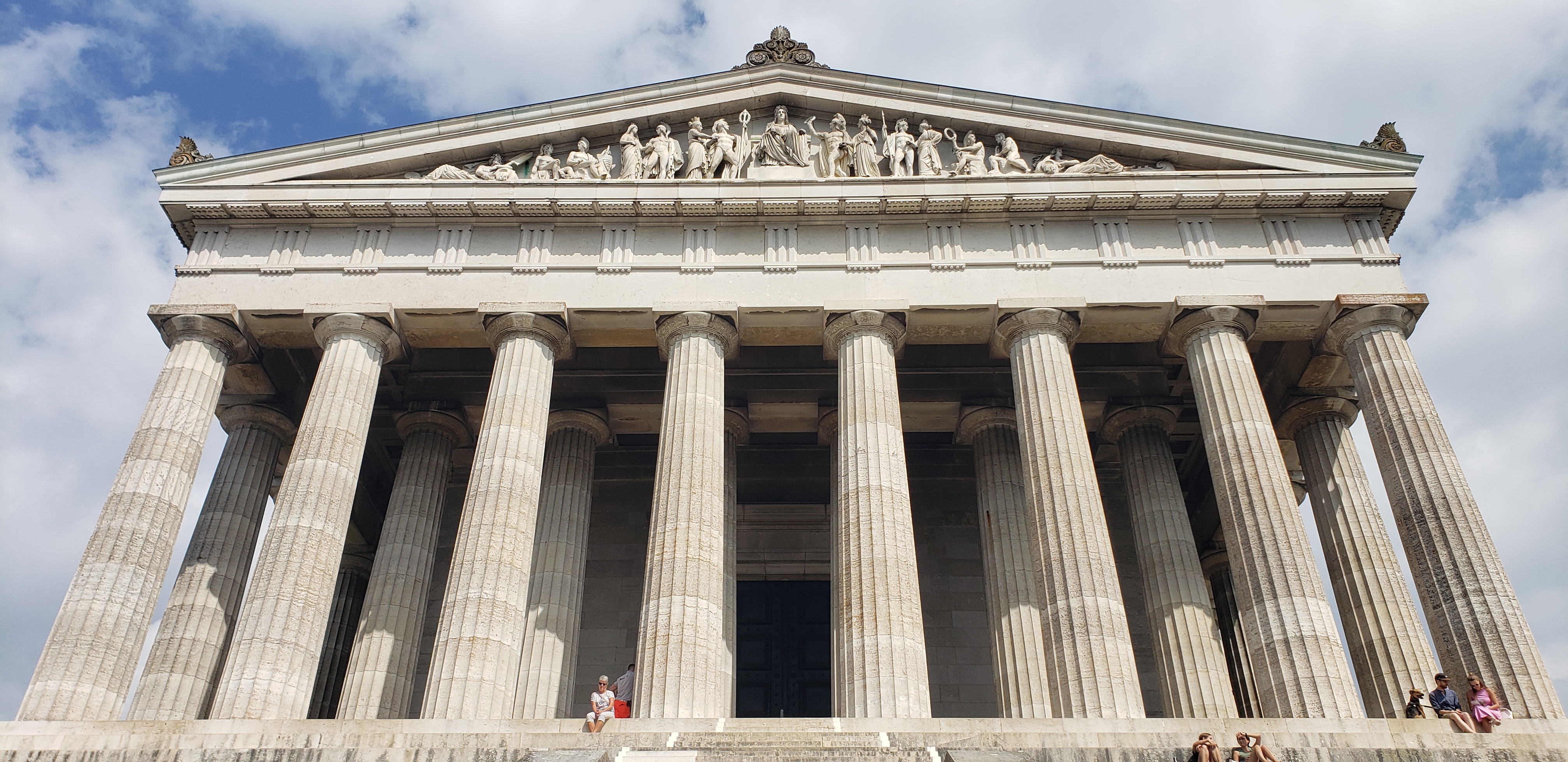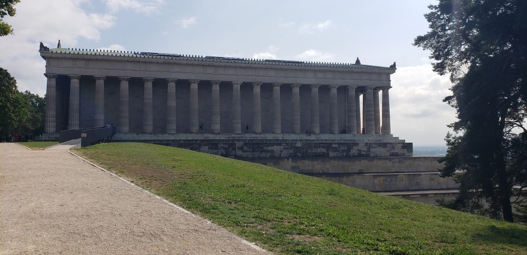Our last full day in Regensburg we actually left town, though only just a bit outside, taking the local bus to Walhalla. Walhalla is a massive neo-classical building that looks like it is straight out of ancient Greece (the Parthenon in particular, and, as we had just seen the Parthenon in Athens a month before, could confirm). The massive structure was built in the mid-1800s to honor famous Germans through history; and Jesse had read if we were in Regensberg it was worth the short trip (the bus was only about an hour; by car its much faster).