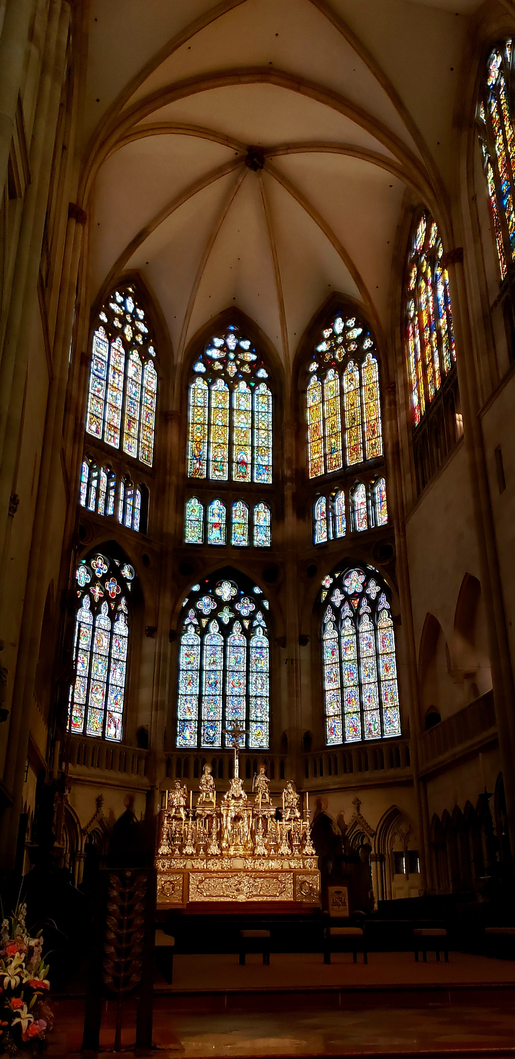 We made it to the Cathedral and the stained glass was as impressive as I have seen in our time traveling around Europe, rivaling León’s. The uncountable number of pieces of multi-colored glass were so small, so colorful, that seemed almost impossible to fathom the time and craftsmanship these windows required. The pictures here do not do them justice, for sure.