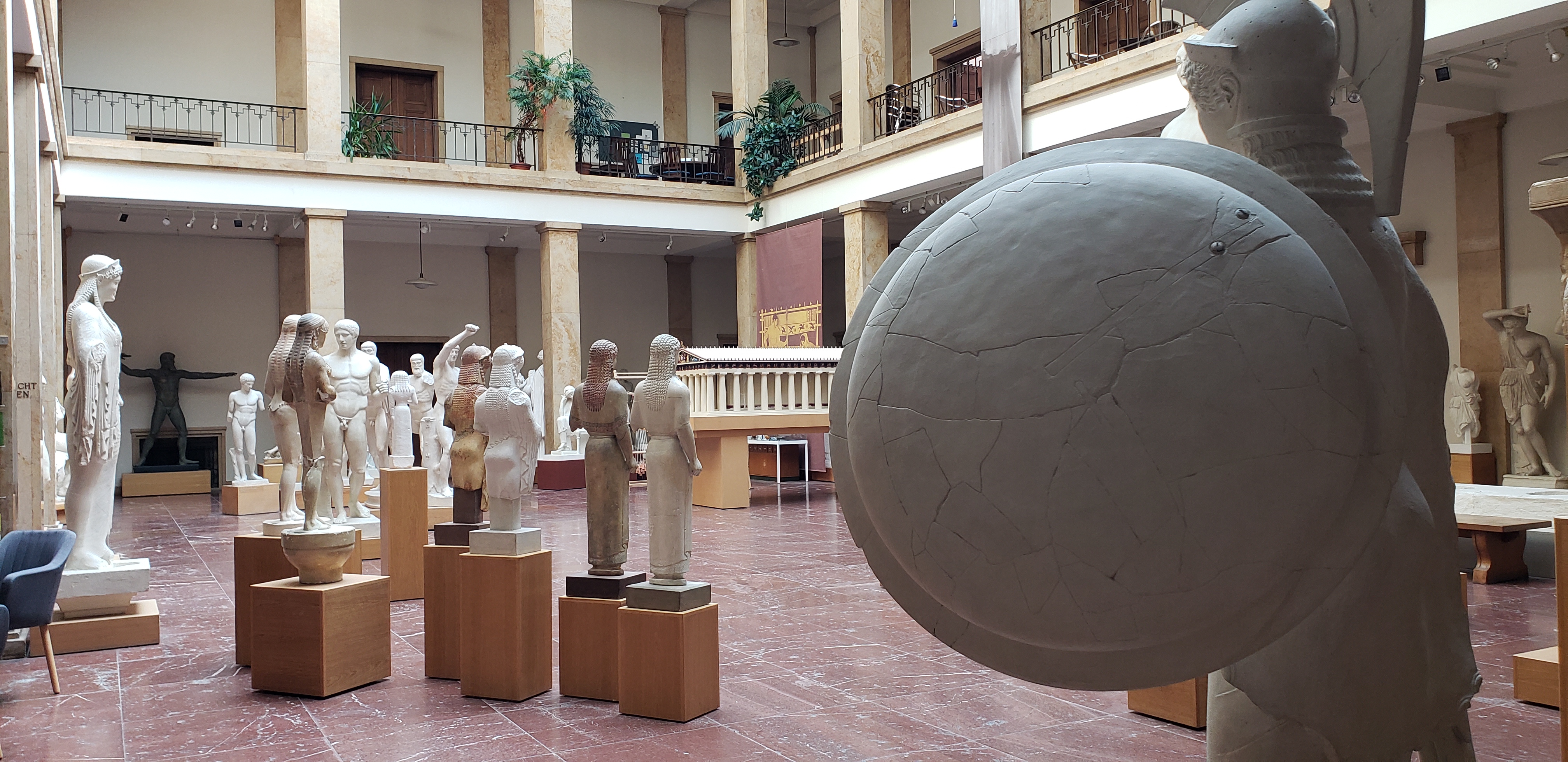 On our way to the Lenbachhaus we passed a building that looked like a museum, so we went inside, and asked the desk man what the entry fee was. He said free, so we thanked him and went inside. Once inside, we were in the inner courtyard of the covered, four story building; there were plaster statues everywhere, not necessarily arranged in any organized way.