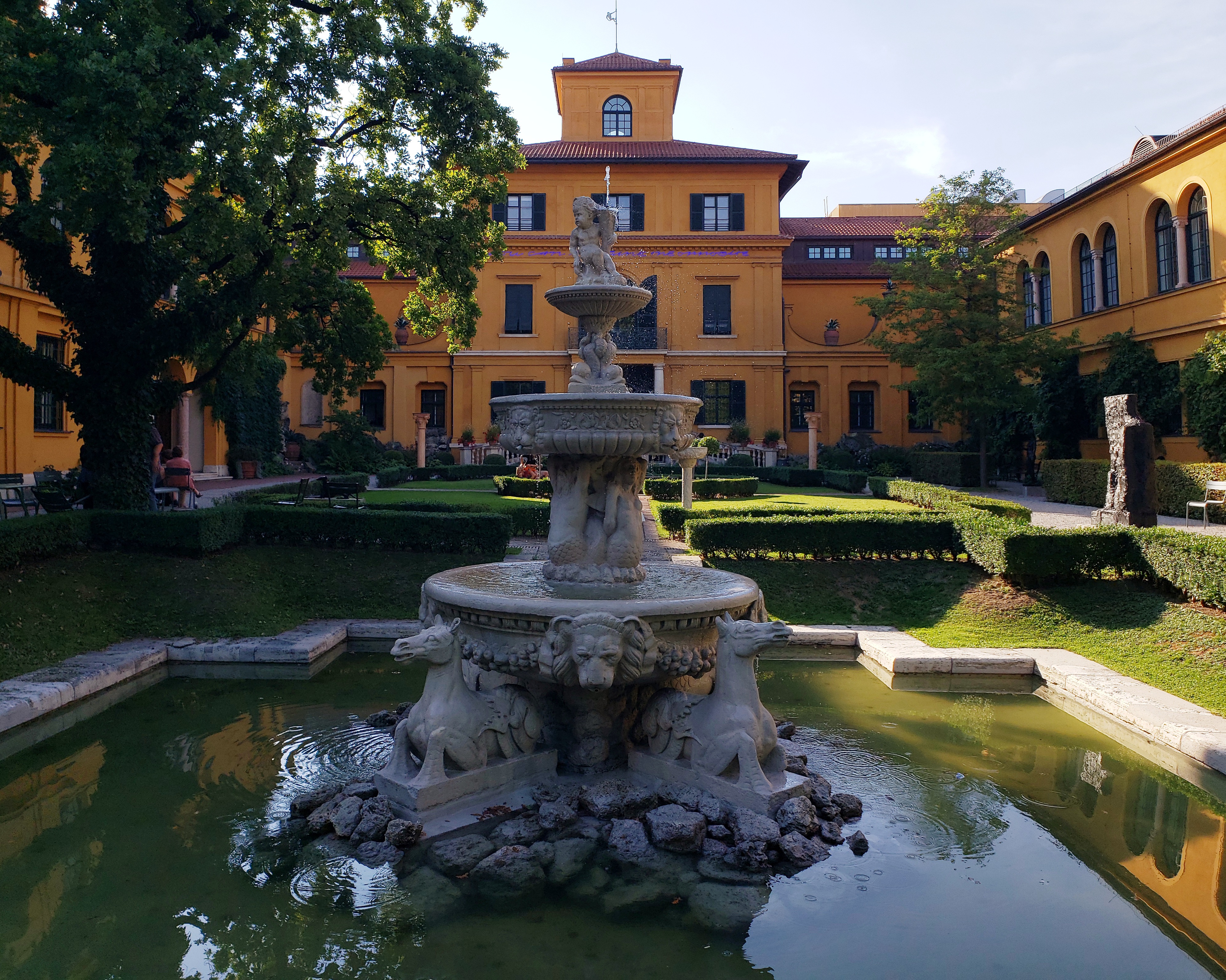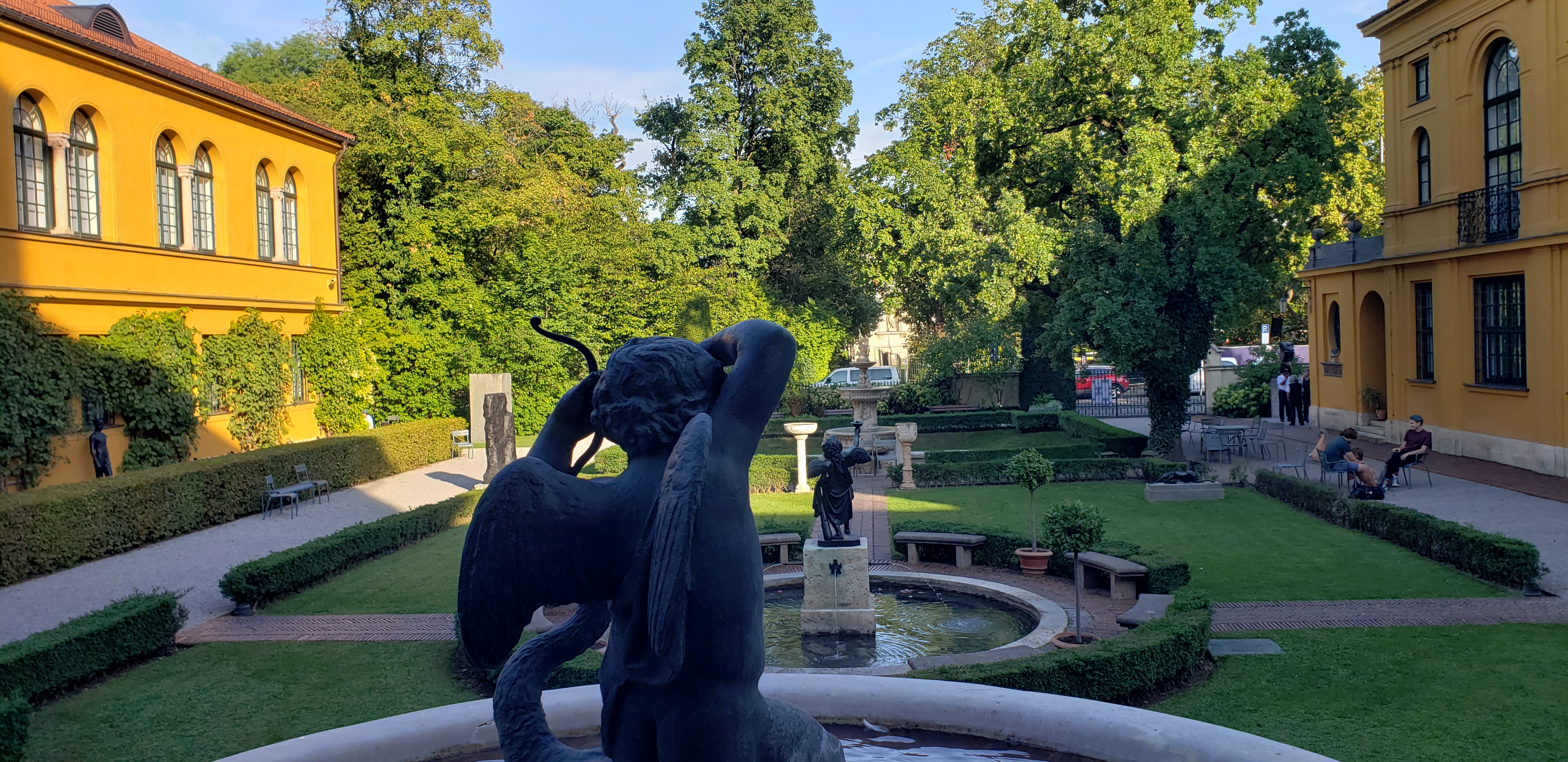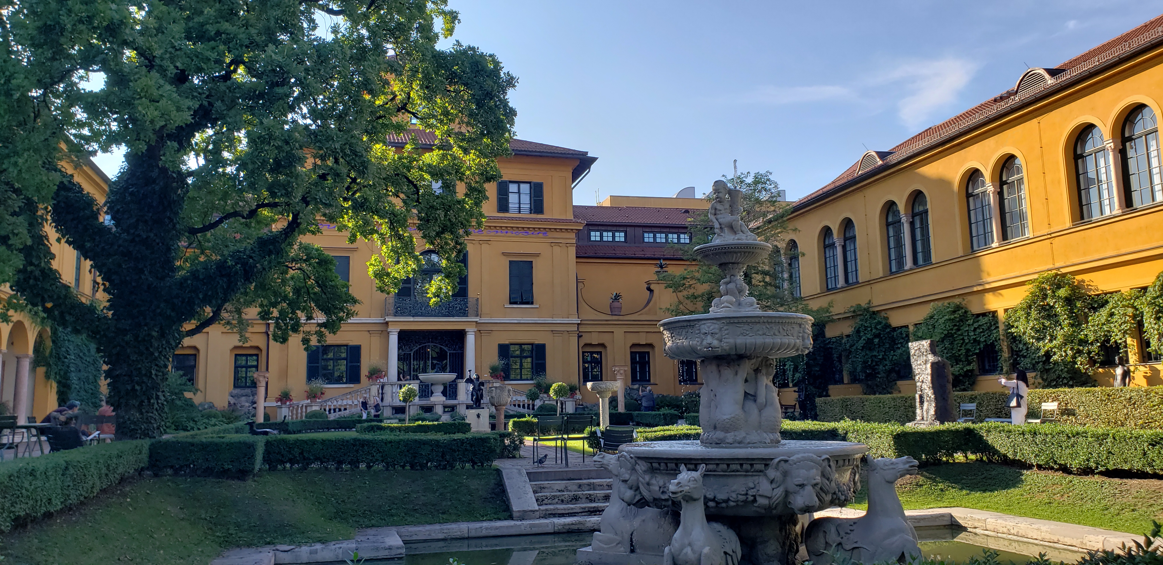 With only a few days left until we leave mainland Europe we returned to Munich after a brief visit to the magical town of Regensburg. The weather was against us, and sunny days of summer were ending. Inside activities time, and that means visiting some of the best museums in the country, and a couple others too. We made plans to visit the Lenbachhaus museum first. We first walked through Alter Botanischer Garten, a big park with a couple fountains as some really pretty blooming flowers of multicolored variety, and of course, a Beer garden.