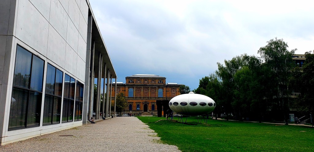 The Pinakothek is actually two separate museums, one for modern art (Pinakothek der Moderne) and one for fine and other European art (Alte Pinakothek). We went to the modern art museum, first stopping to take the picture at the top of the blog in front of the home of the future.
