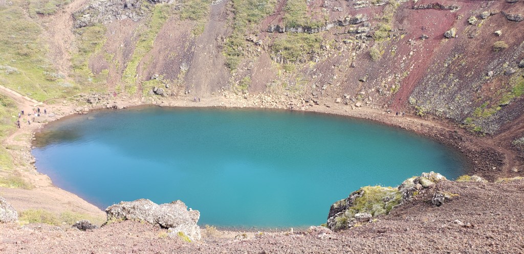 Something to note about Iceland is that there are a lot of fellow tourists, driving on the same route (as there are only a few major roads, usually route 1), stopping at the same places. We saw the same people a few times on our journey at different stops, and that will happen, but taking some of those unmarked roads is a great idea if you’re just a wee bit adventurous and have the time, if you’re looking to get away. Our next stop southward was the Kerid Crater, which is a turquoise lake located in a volcanic crater.