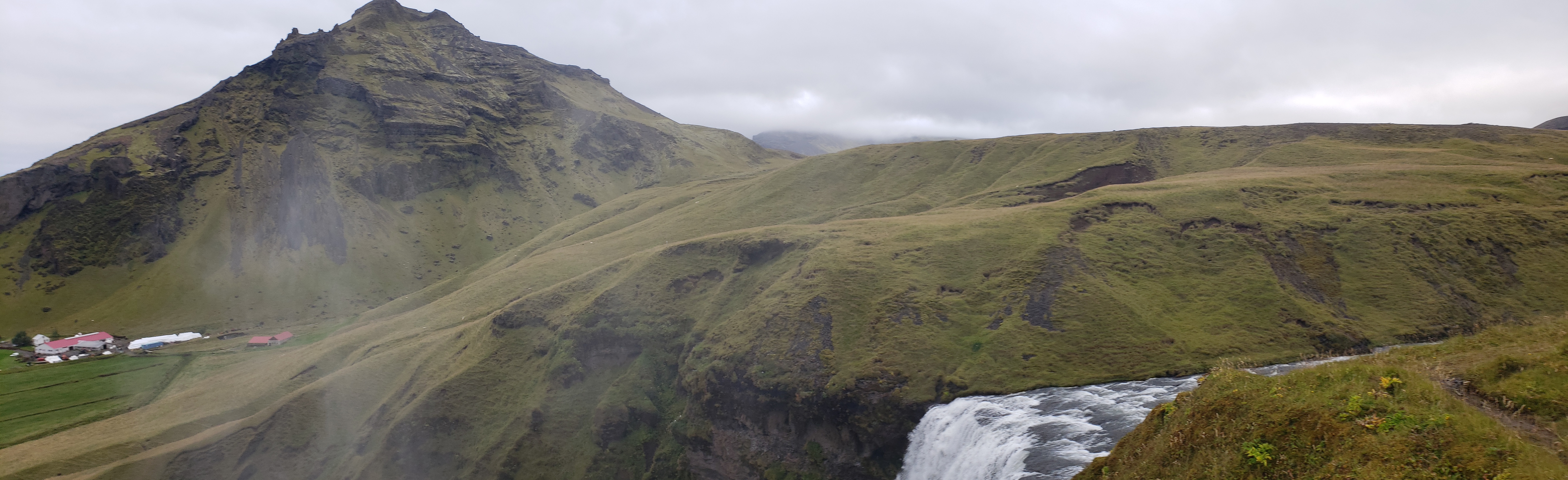 As we continued to head southeast, we had one more waterfall to see before resting, Skogafoss. Even bigger than Seljandsfoss, there is a hotel and restaurant and campground all on-site. We stopped in the restaurant (for a very expensive beer) before going to see the waterfall.