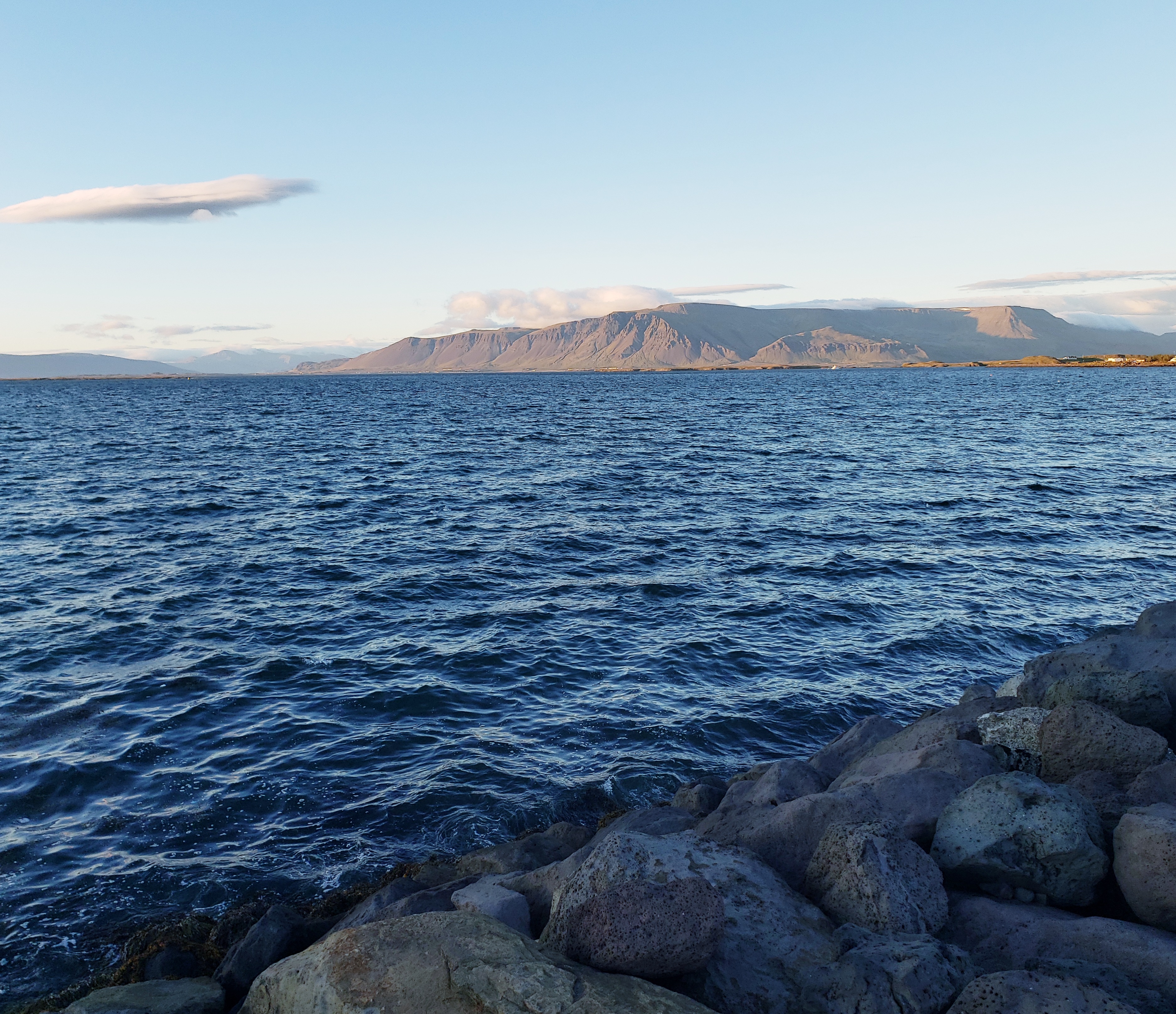 We reached Reykjavík in the early evening; after eating our sandwich dinner we went to buy stocking caps, because, we didn’t have any winter clothes. Then we went walking along the oceanfront.