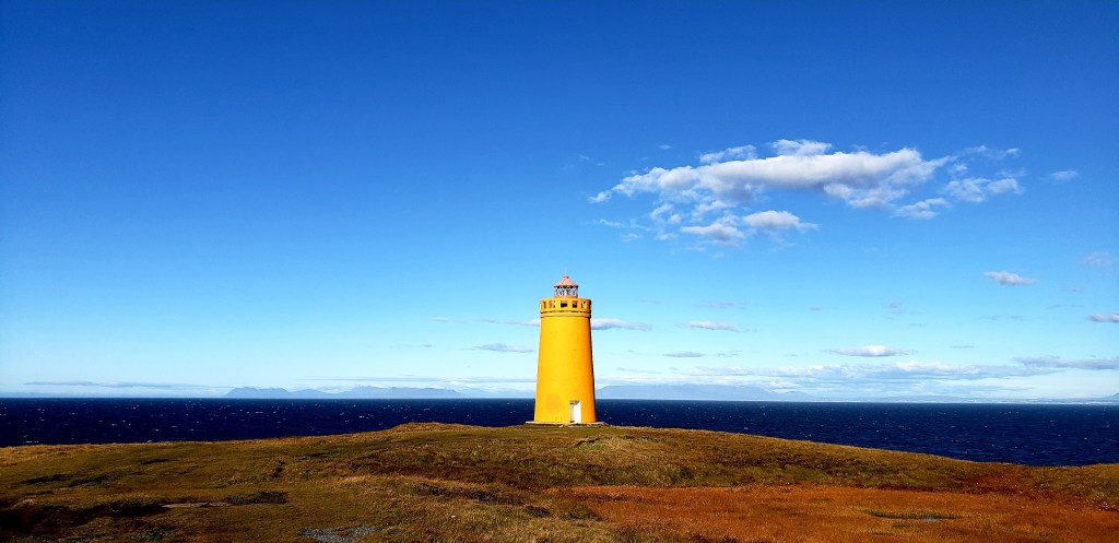 We left Munich, bound for our last stop on our year-and-a-half adventure living in Europe; the country of Iceland. It was a four-hour flight, so not too bad, and when we arrived, we had planned a car rental (or car hire, as they say in most of the rest of the world, which is kind of strange, but then again, I am hiring the car to do a job, so I guess it works) for our three day stay. We picked up the car, and I saw a lighthouse only ten minutes away from the off-airport rental agency, so we went there first. The Holmsberg Lighthouse is painted bright orange, and stood out in stark contrast to the soft, green grass in front of it, the light blue sky above, and the deep blue ocean behind it.