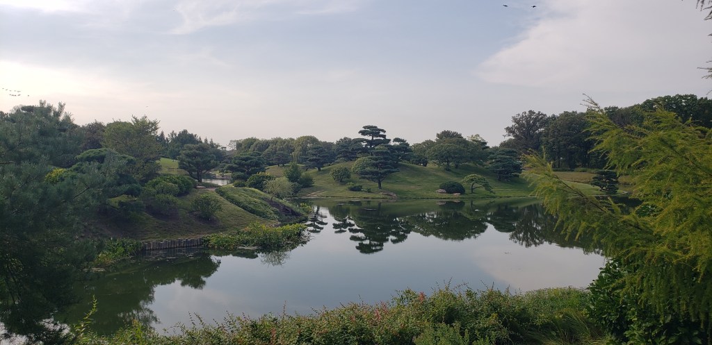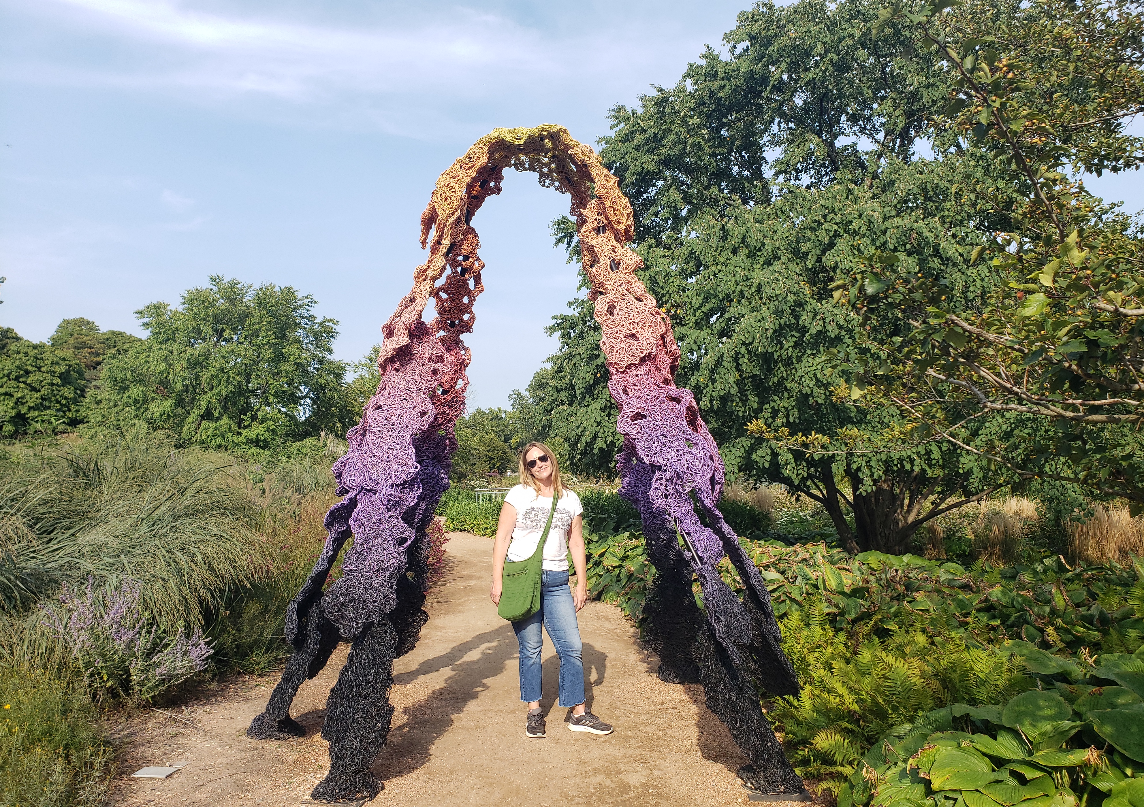 Jesse and I were staying in Lake Forest, Illinois, which is a suburb north of Chicago, with my mom, who we ‘d last seen when she visited us in Italy back in May. We visited the Chicago Botanical Gardens, which are so large that even with parking lots full of cars, we were still able to wander with few people in sight. There are some cool installations: