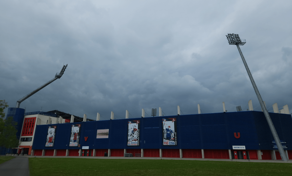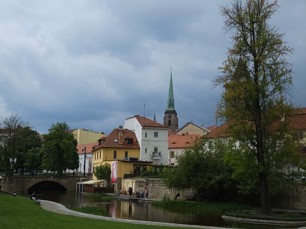 After our beers, we walked into the center of town, over a funky bridge, past the FC Plzen soccer stadium, and across a small in-town river.