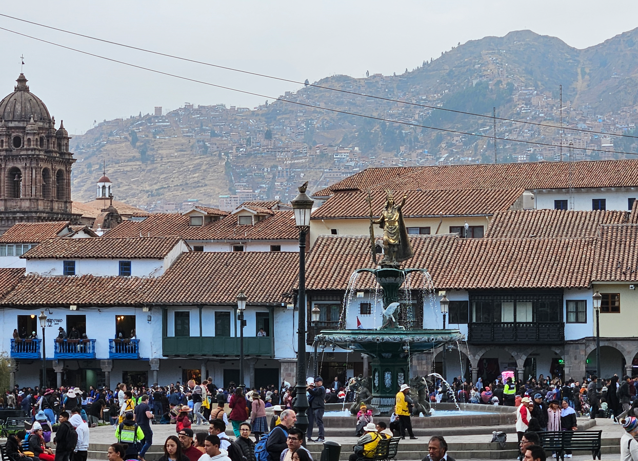 After freshening up in the room, we were off to our tour of Cusco with our tour guide, Arturo, who would accompany us all the way to Macchu Picchu. He was to be an excellent guide and made us feel very comfortable and we felt really lucky to have him as our guide. The hotel was only a few minutes from the Plaza de Armas, which is the main square, and on that was the Cathedral and another monastery, among tourist shops and restaurants, all surrounding a fountain with a statue of Pachacuti, the most famous Incan leader.