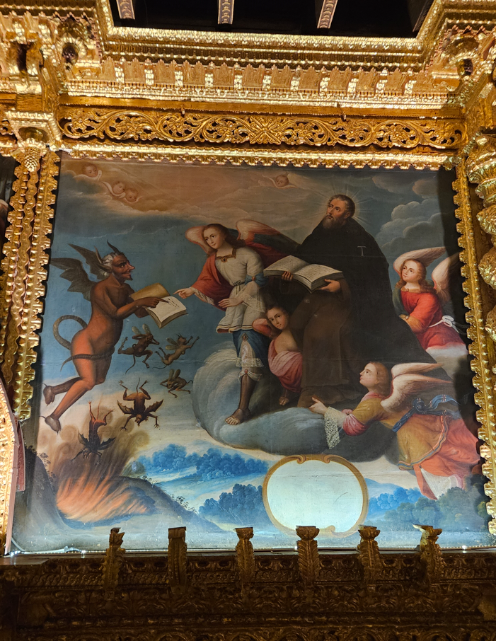 The Cathedral had similarities with European Catholic Churches (of which we have seen many) but also some stark differences, in terms of the interior of the churches. Jesus being portrayed on the cross clothed in a colorful skirt was unexpected, as was some of the art work(see the third picture). The ornate altar was not uncommon, and I appreciated the Annunciation featured front and center.