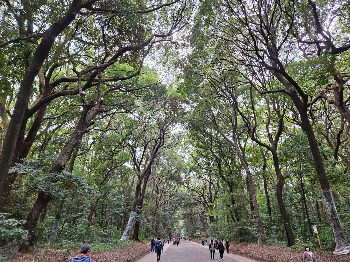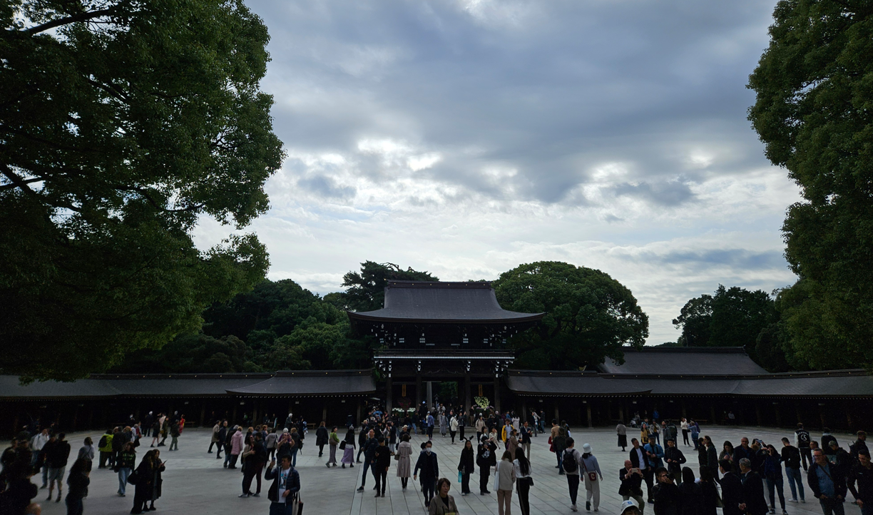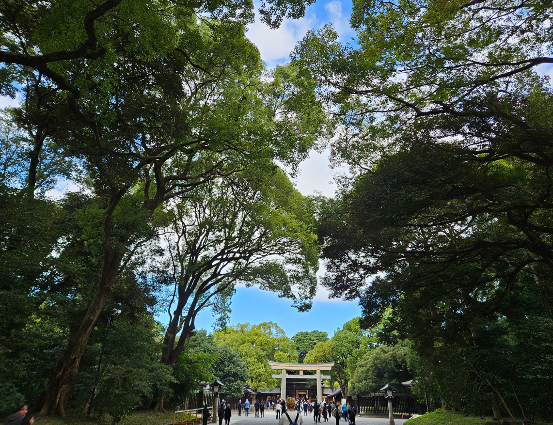 Today was Jessica’s birthday, and we had a fun day planned. We started at the world famous Meiji shrine, which was only a train stop away. The grounds are huge, which helped people spread out, as there were a lot of visitors. The pathways were as wide and under cover of many large trees; the shrine buildings were impressive as were all the trees around.