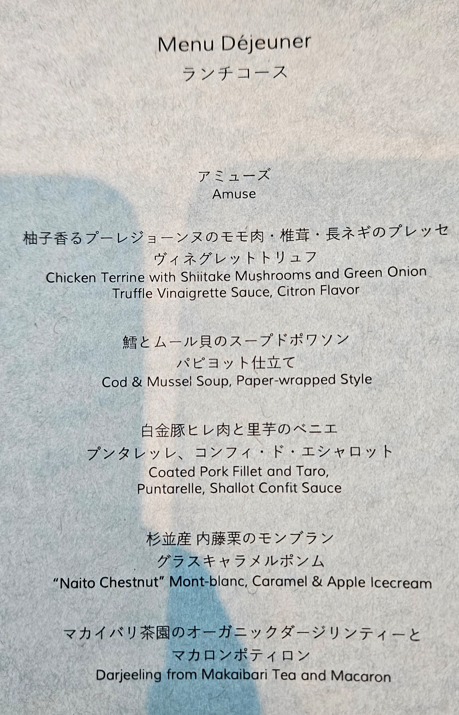 For Jesse’s birthday lunch, we were in for a treat; the view and the six-course Japanese-inspired French tasting menu (so reasonably priced too!), menu below. It was such a wonderful, unforgettable experience!