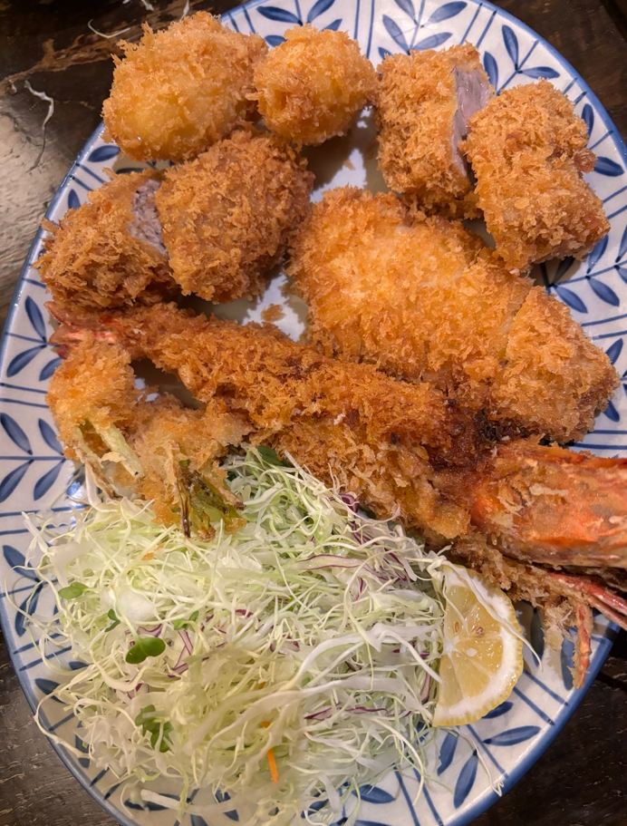 We visited a few art museums, and walked and walked and walked, but those are saved for the next “For Art’s Sake” post, so on to more food! Jessica’s birthday dinner, to be specific. We had reservations at a Tonkatsu restaurant in Shibuya. Tonkatsu are deep fried pork cutlets (and other meats and fishes) and we ate until our hearts’ content.