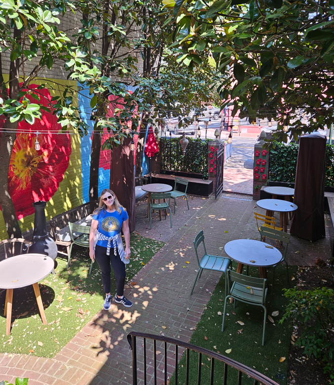 The taxi stand is right outside the train station entrance, and we queued for a bit, under the hot sun. Quickly enough, we were in a taxi and on our way to our hotel in Georgetown. There is a lot of traffic in DC, and we soon learned that going only a few miles would usually take 20+ minutes, at best. We were on the top floor of the small, boutique hotel, and they also had a courtyard that provided a nice place to wait for the rideshare.