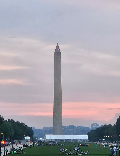 Our first real stop were pictures just after sunset in front of the Capitol and a selfie with the Washington Monument. No building can be taller than the Washington Monument in DC, so it is often in the background, and cool to see it from so many angles all over the National Mall.