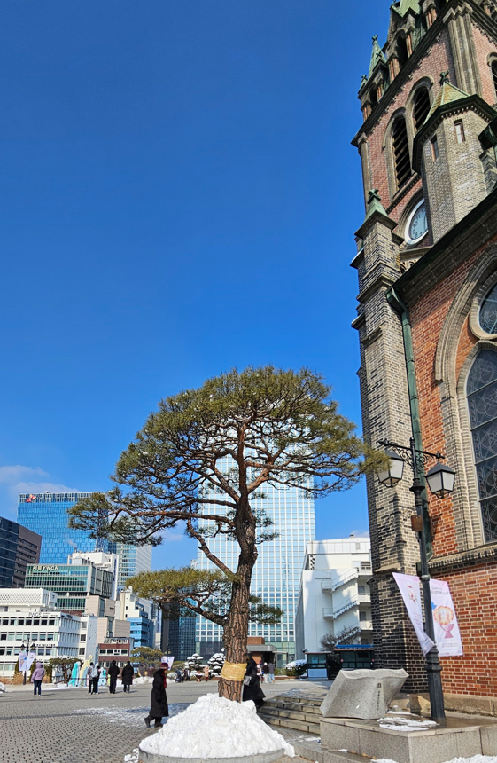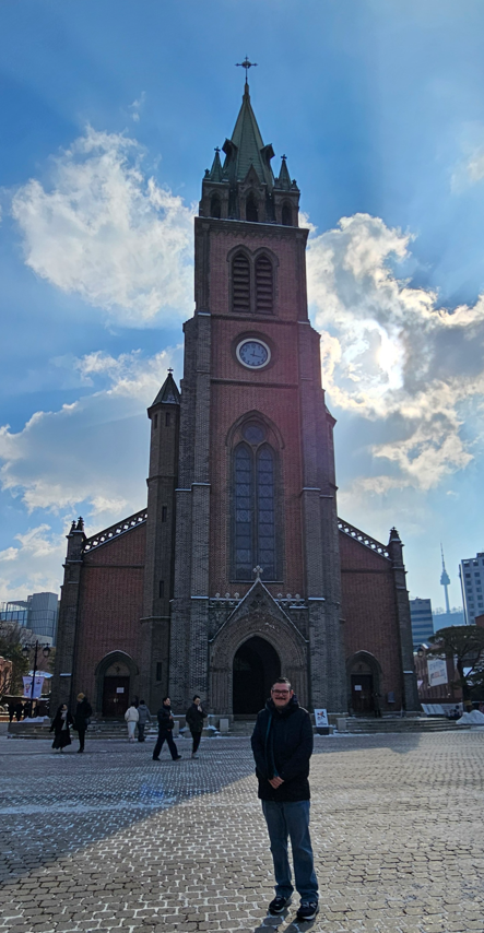 We learned later there are many churches in and around Seoul, of the many denominations of Christianity. After lunch, we noticed we were near the Catholic Myeongdong Cathedral, which is the head of the Seoul archdioceses and has a whole campus devoted to it, including a two story mall with shops, cafes and restaurants. We took in the 19th century-built cathedral from a pew, and later had a coffee amongst nuns and other visitors.