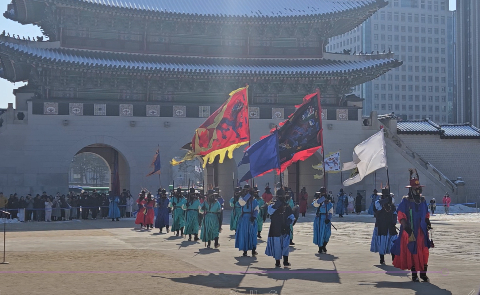 We learned that when the Japanese colonized Korea they tore down 95% of the palace buildings and built a big, ugly, government building, that the South Koreans tore down in the 90s, and began rebuilding to the original specifications.