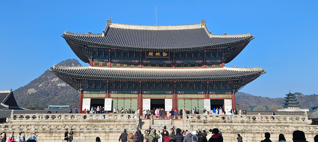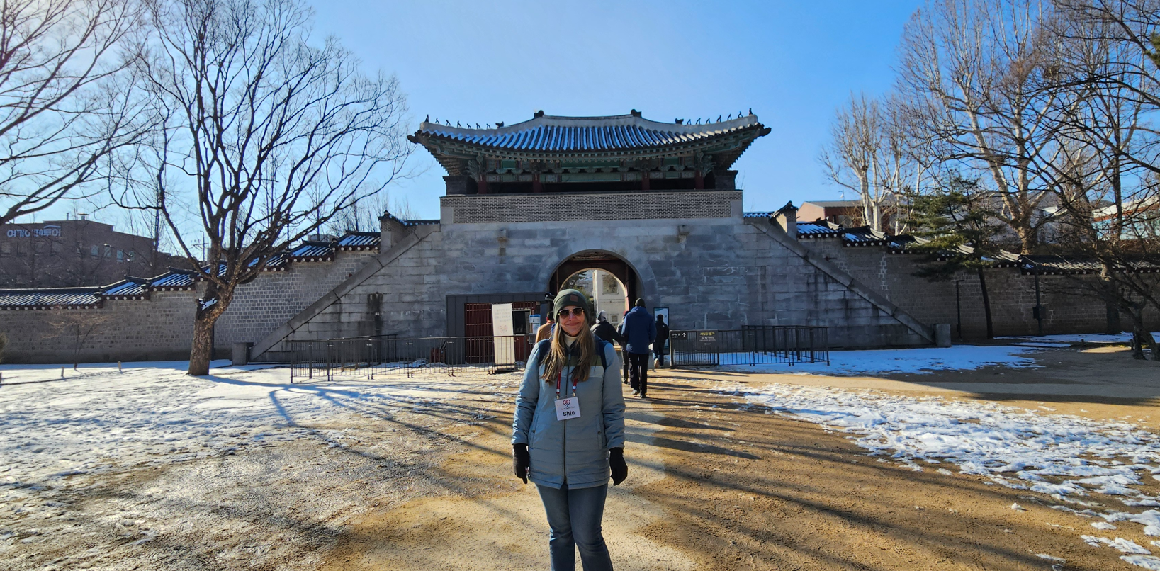 We were joined by eight others from all over the world on our day tour and we piled into a large van; first stop, Gyeongbokgung Palace, which was the seat of power of the Joseon (pronounced Chosen) Dynasty. On the way we passed the US Embassy, located just outside the main gate. We were able to watch the changing of the guard, which was a colorful and memorable experience, as we tried to keep warm.