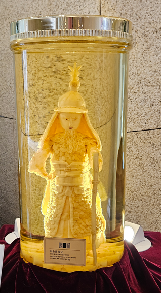 We warmed up with some coffee and were on our way to the next stop, the Bukchon Hanok village (where we visited the day before). Luckily we didn’t spend much time here, and were on our way to the next stop, the Ginseng Museum. Now, the Ginseng Museum was not mentioned in the tour description, and we have been on other tours where there is a stop to do some “selling”, but this one was on another level. The “museum” was immaculate, and there were some top notch displays, multiple floors, on the history and how Ginseng is grown, including full size dioramas of how they grow it, and the different types. They even make figures, like the one below, out of it. We ended up in the sales room (of course), where every two of us had their own sales person. While we did not buy, but it was certainly something else.