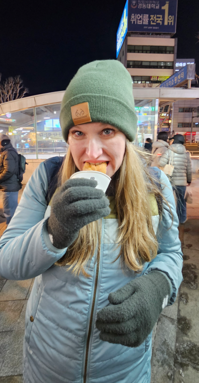 Our six-hour flight from Raleigh to Seattle was delayed so we had to run from our gate right onto the plane for Seoul and 12 hours (5 movies, 2 TV shows, and two plane meals later) we arrived to frigid temperatures (30 degrees Fahrenheit). But it didn’t matter, we were on our way. We had nothing planned for the first of our 8-day Seoul visit; the best thing about slow(er) travel is there is less need to pack every day full of things to do, and we have found the best way to experience things is to wander and not know where we’re going.