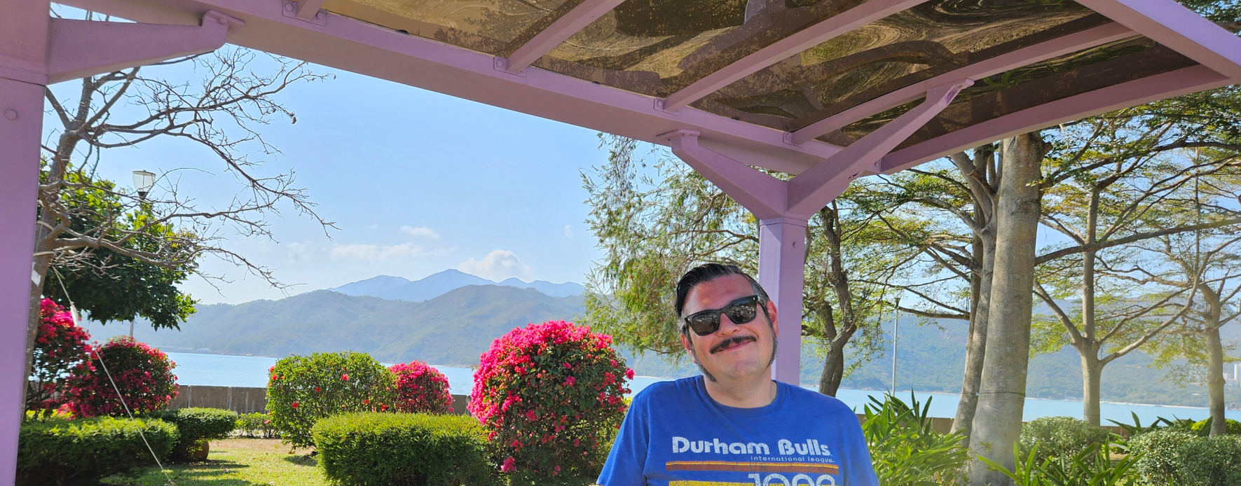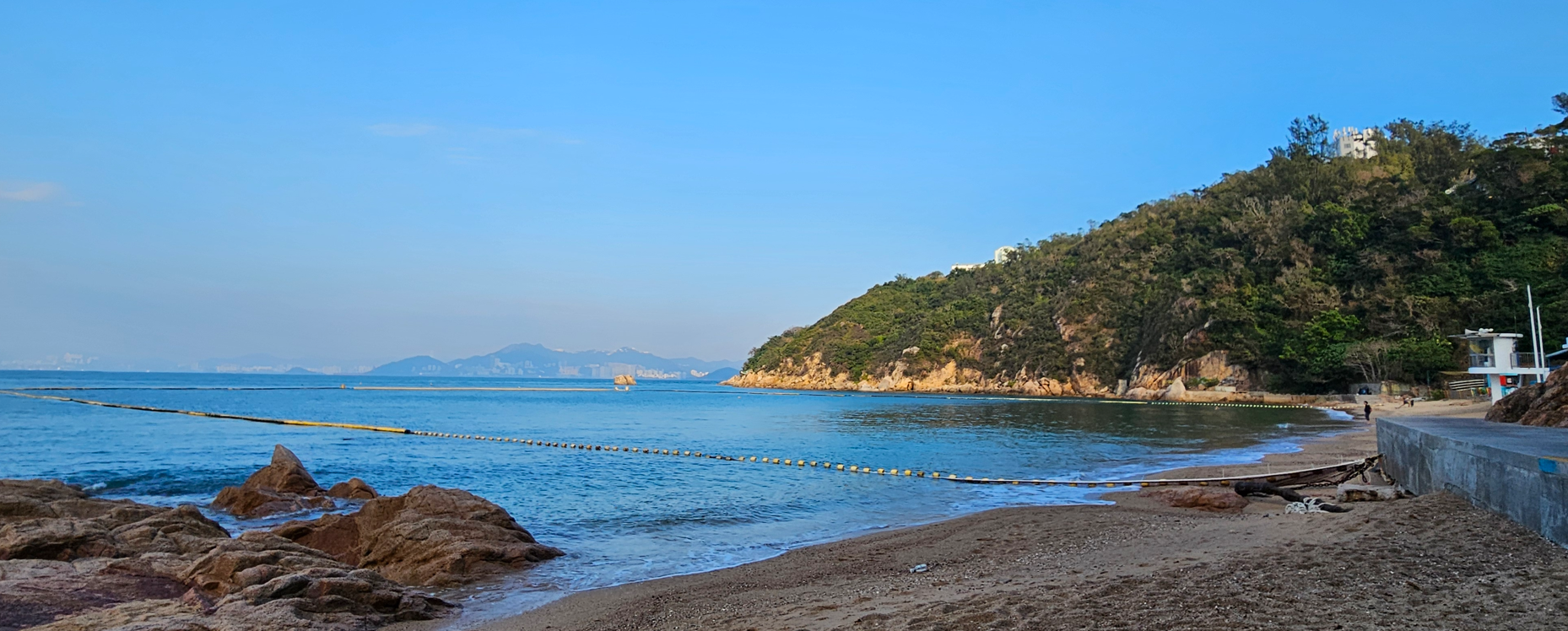 Our last stop was Tung Wan Beach, where a few people were milling about and a couple of young men were racing RC boats in the shallow, calm water. It was a peaceful scene and we hid from the sun under a pavilion.