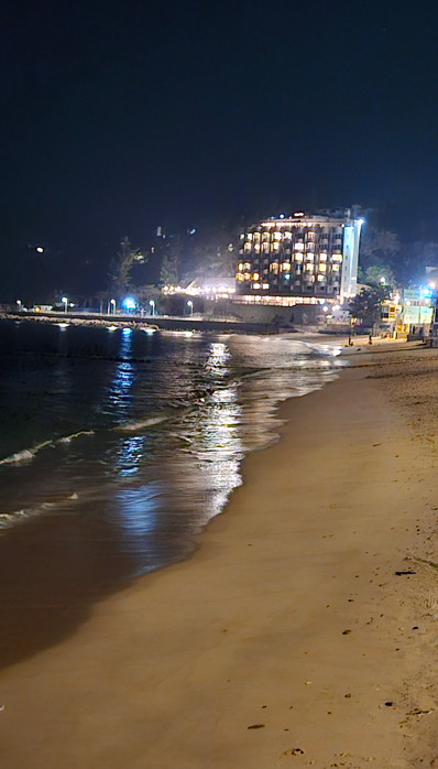 We walked by a convenience store to get some bananas and snacks for breakfast, and along the opposite side of the island, where many, many boats of varying sizes are present, and lights are flashing non-stop.