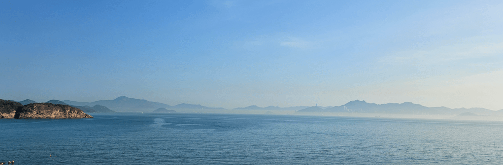 The next morning we awoke early, to the cloudy haze over the mountains across the sea from us.
