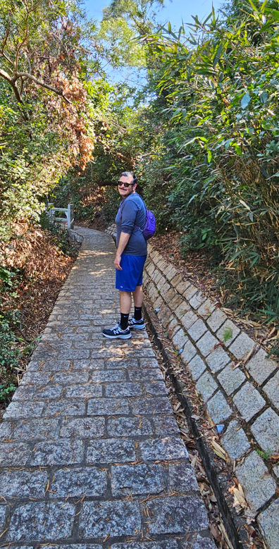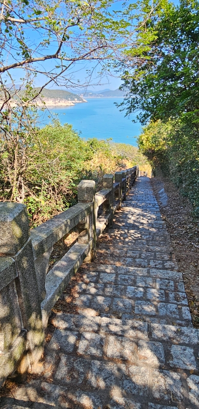 Then it was up, up, up stone steps, then down some, then up, on the mini “Great Wall.” We were sweating even with the cool island breeze.