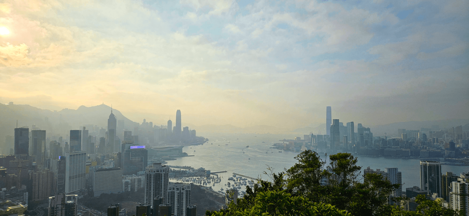 The Best view of the city is at Braemar Hill Peak (skip the peak tram if you have to choose). There is a Green Bus (from near Victoria Park & the Hong Kong Libary) to take to Upper Braemar Hill and a 30-minute hike from there (if it rains, you may get muddy):