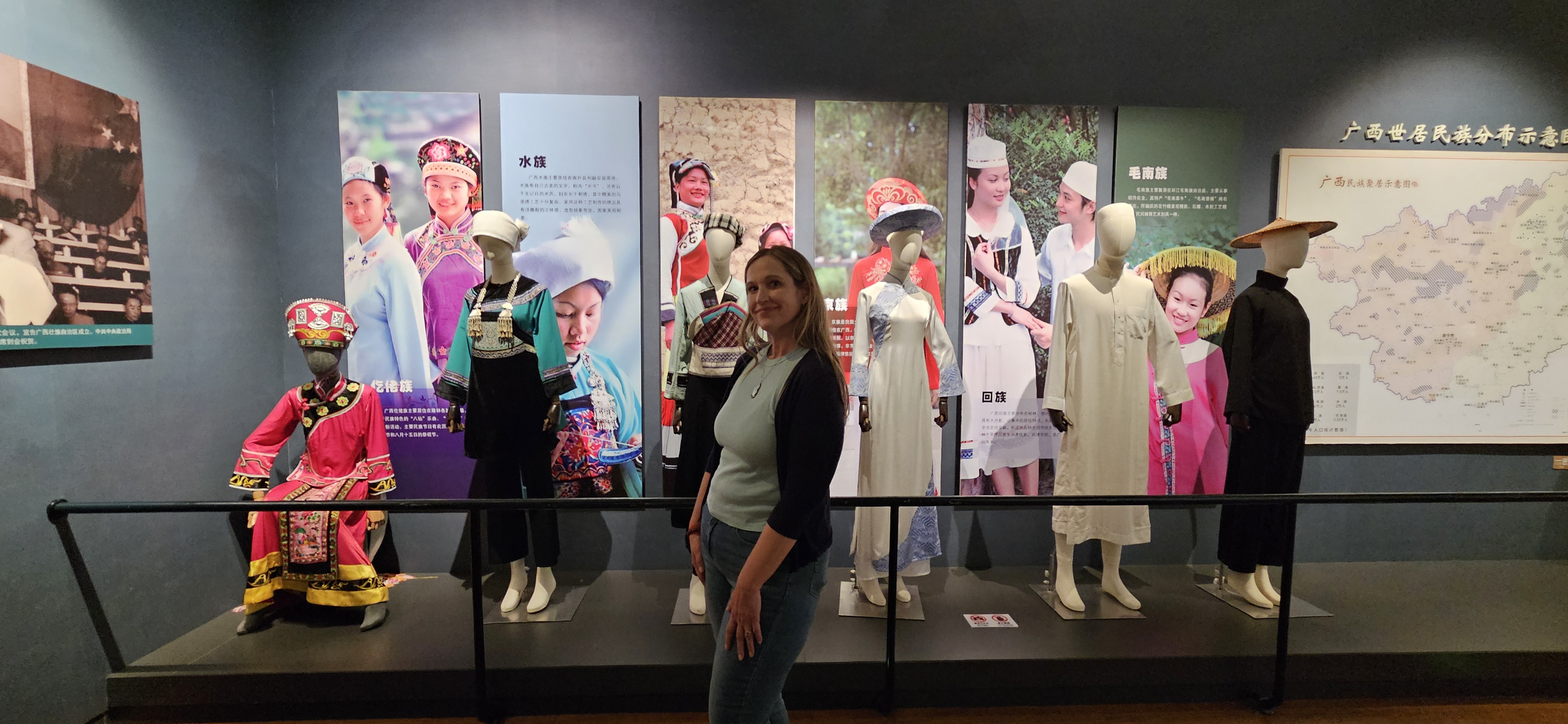 After our visit to the Confucius Temple, we walked about 15 minutes to the Guangxi Museum of Nationalities. China has 56 different ethnic groups, totaling nearly 1/10th (that’s 140 million people) of the total population. 12 exist in the Guangxi Province, including the Yao, Dong, Miao, Mulao, Maonan, Jing, Yi, and Gelao, among others. The Guangxi Museum of Nationalities celebrates all the groups with displays of the different ethnic costumes, buildings, and artwork in a huge museum.