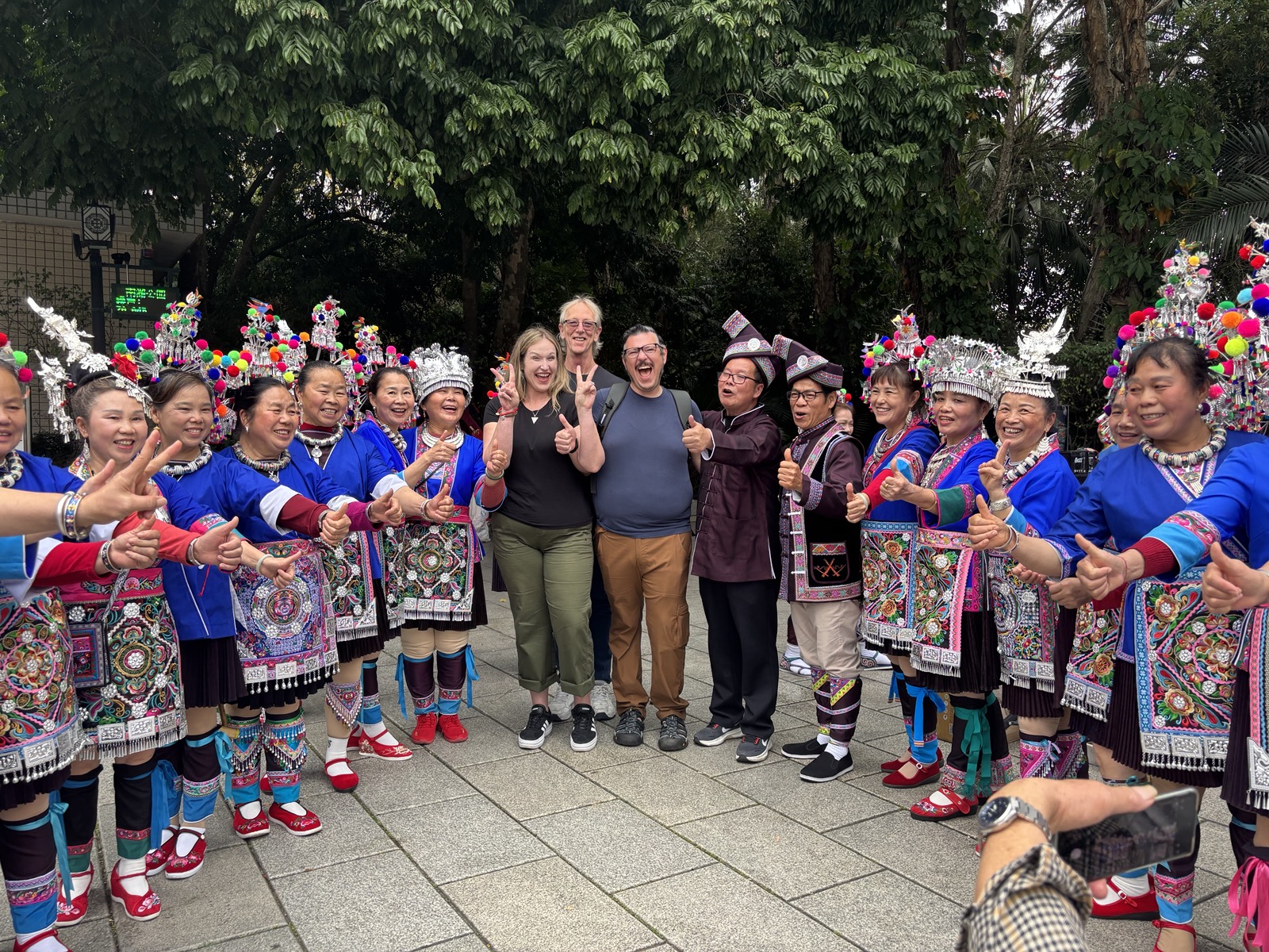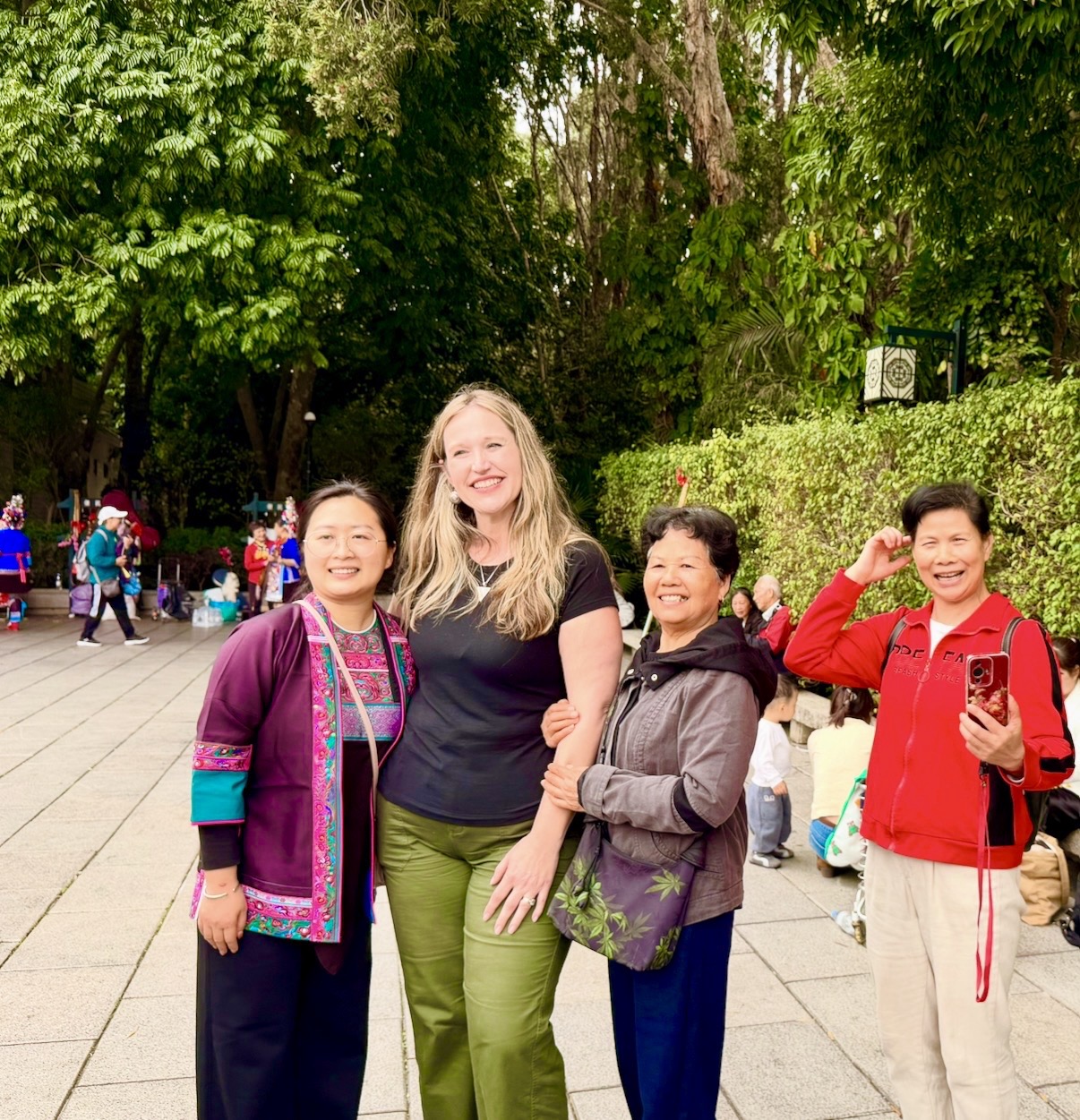 They were so kind and invited us to visit their favorite park on a Sunday, Nanhu Park, where many of the different ethnic groups, some coming to the Park from their native villages, to dress in the traditional garb, and sing songs, share food, and hang out with their relatives that live in the city.