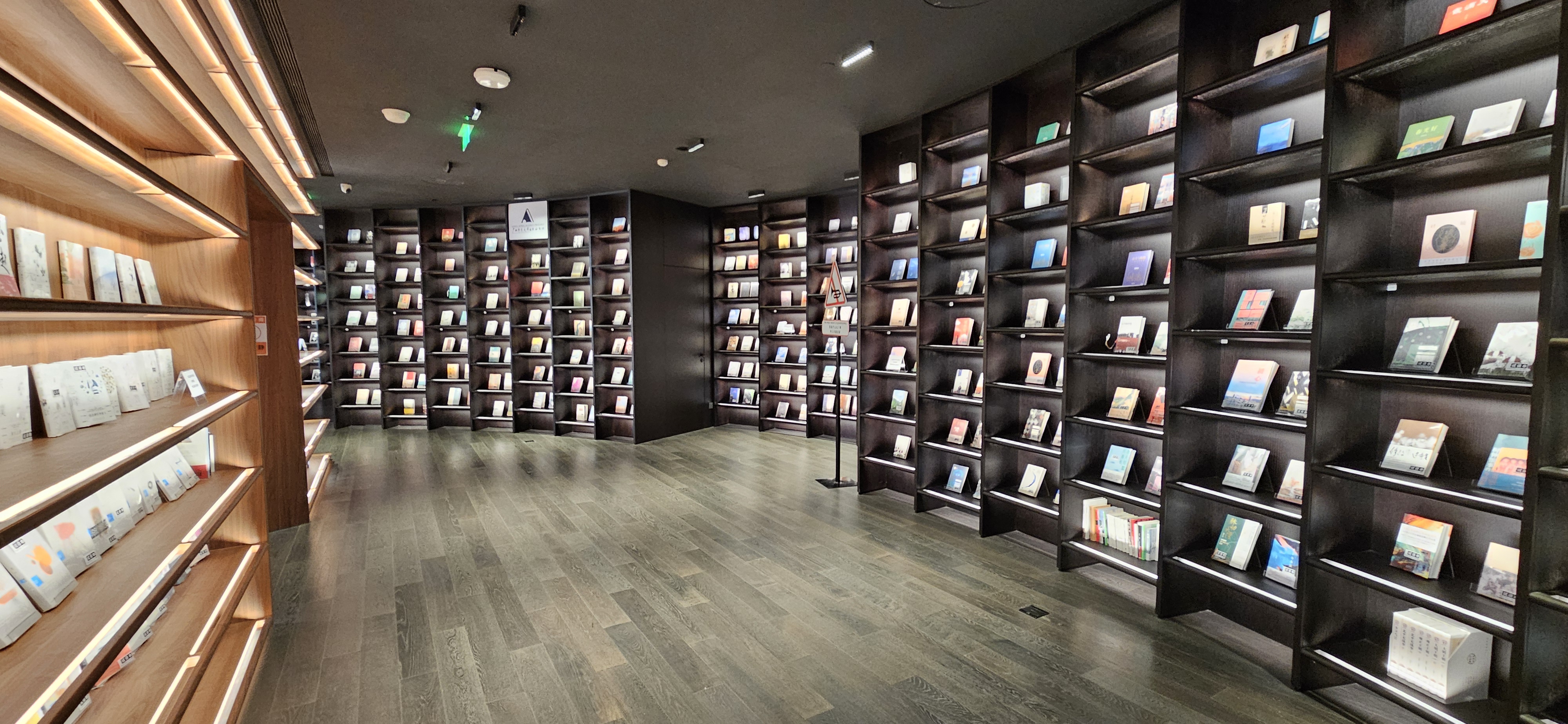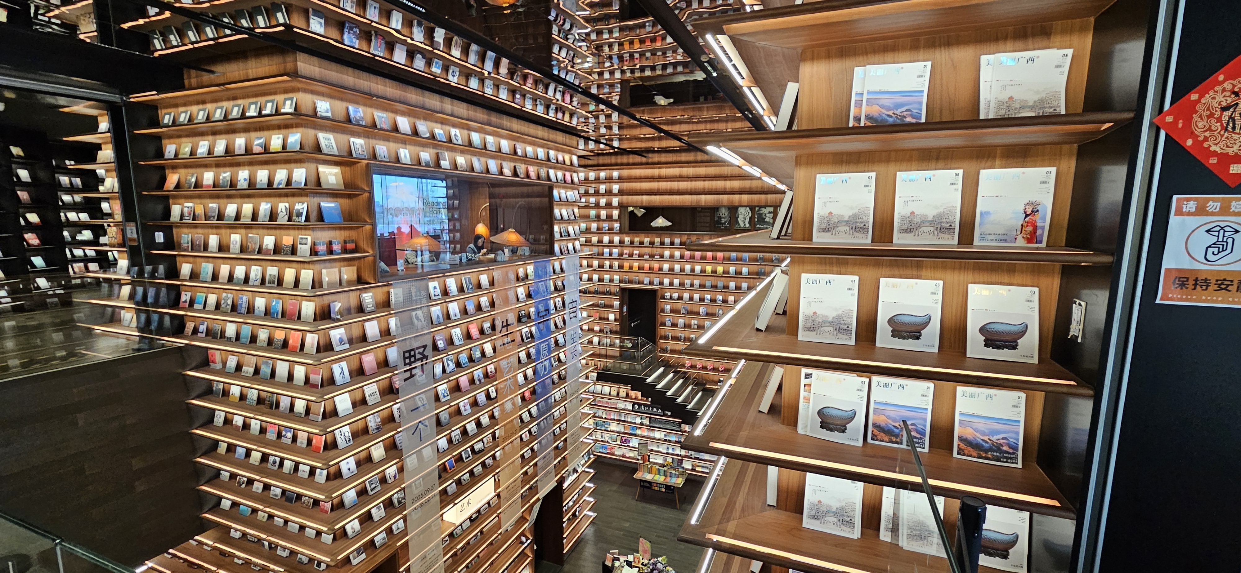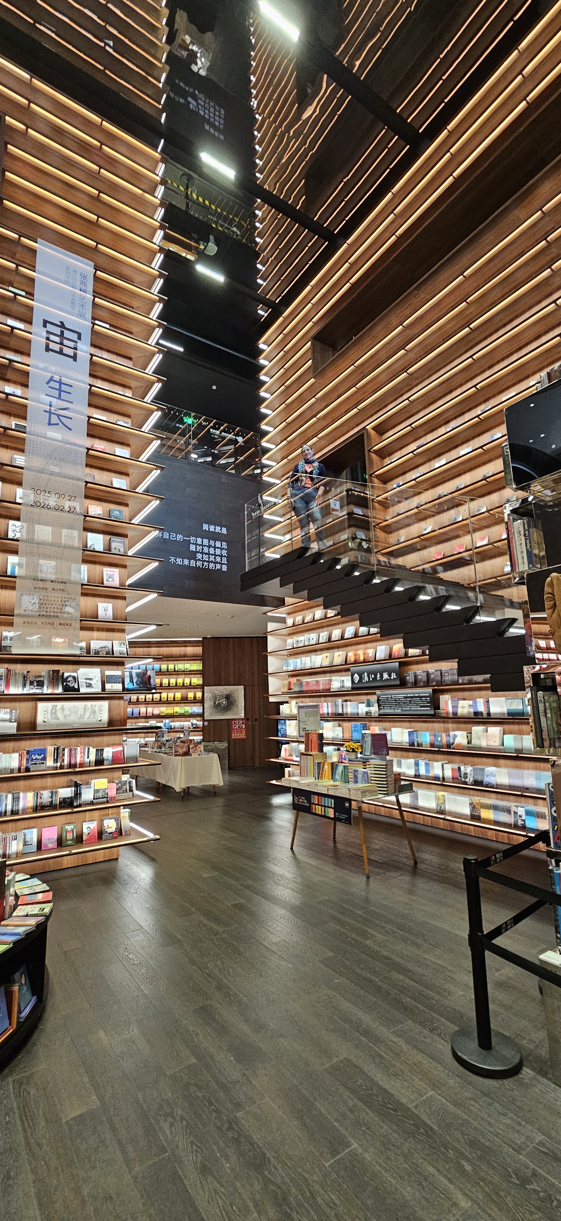 Our final destination was a bookstore named Lijiang Books, out in the suburbs. I had seen a video of it being a cool place to have a coffee and take pictures of the multistory book racks, and we did both.