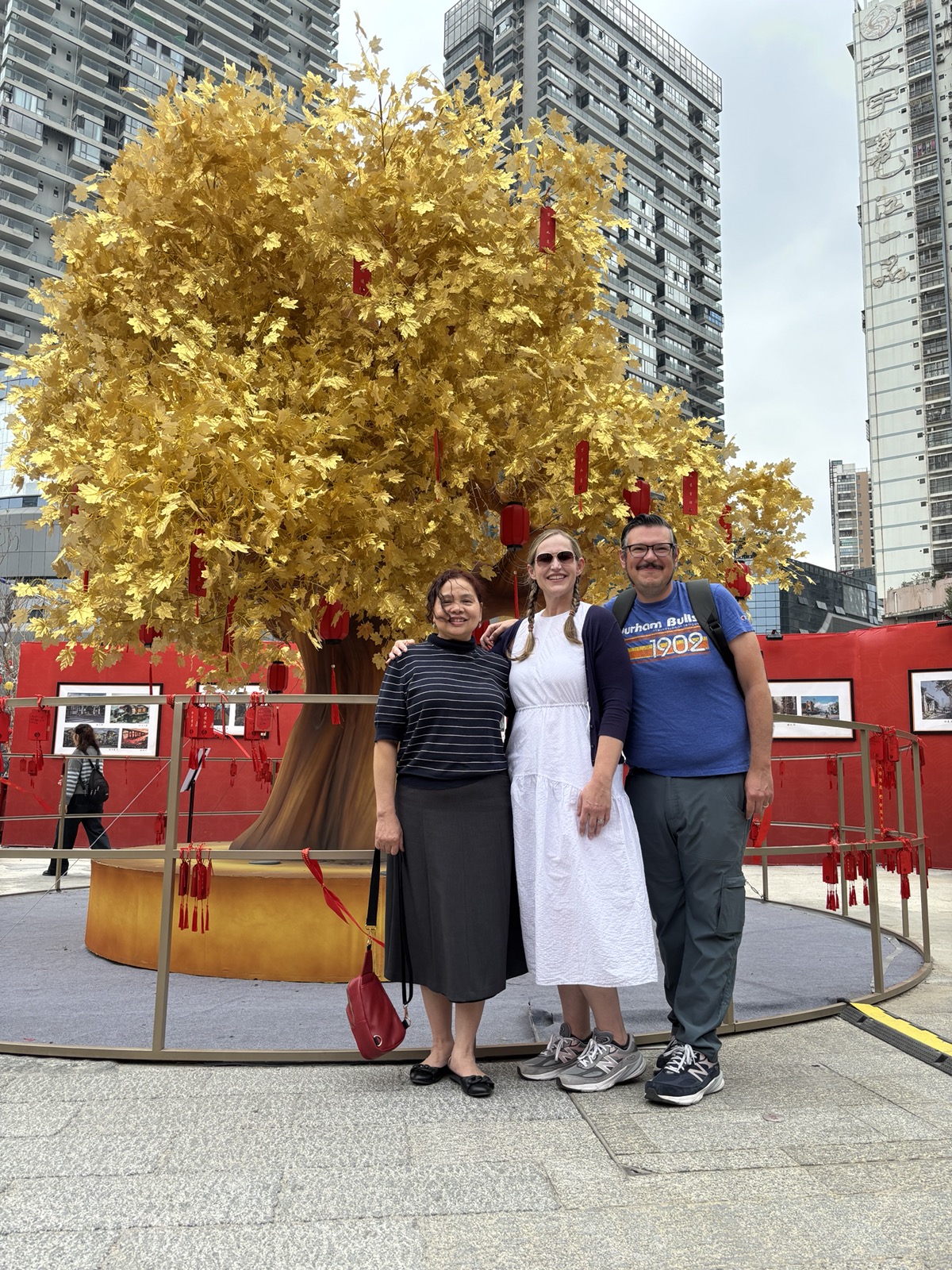 The remainder of the Chinese New Year street decorations were still on display and, as we passed a gold leaf fake tree, we heard a woman speaking English, and began chatting, and learned she lives in St. Genevieve, Missouri, which is certainly a small world!