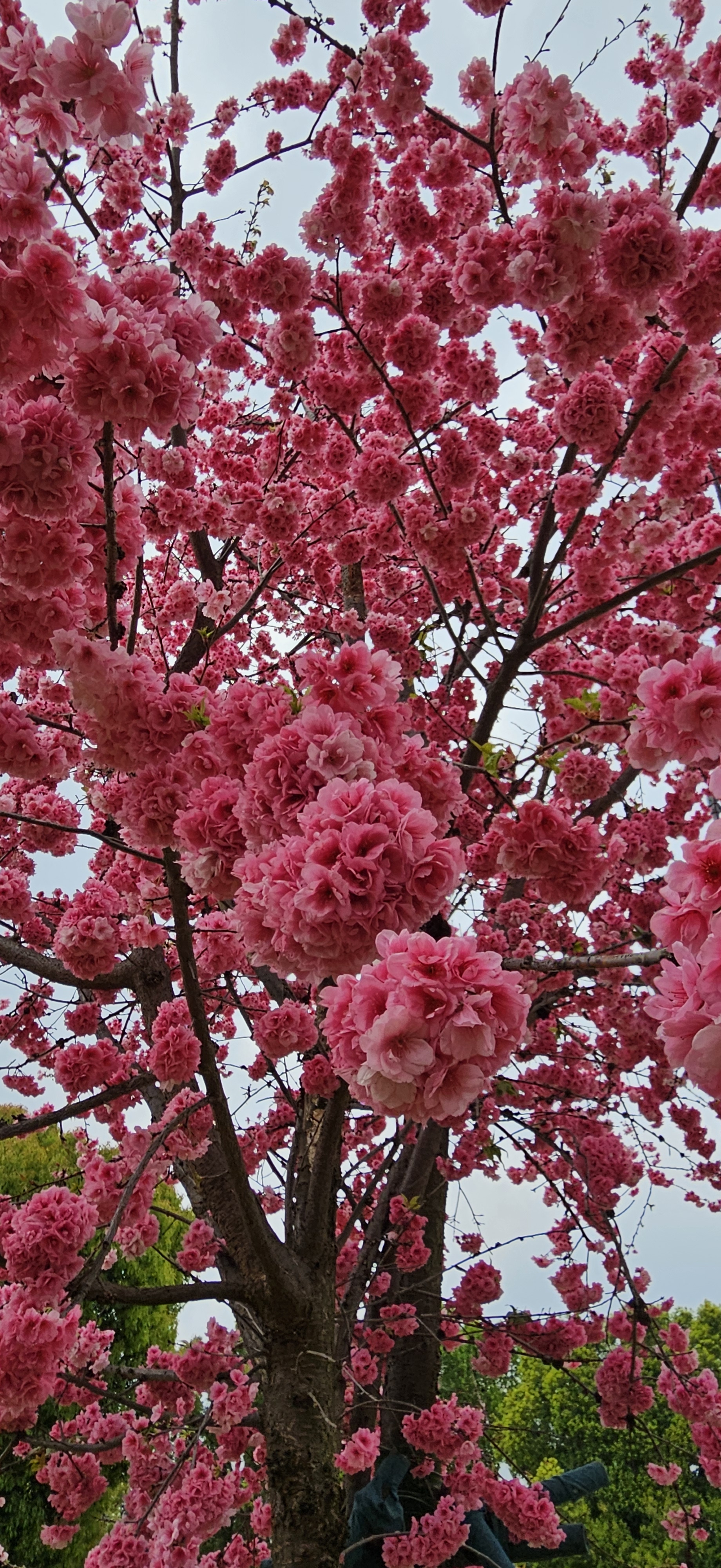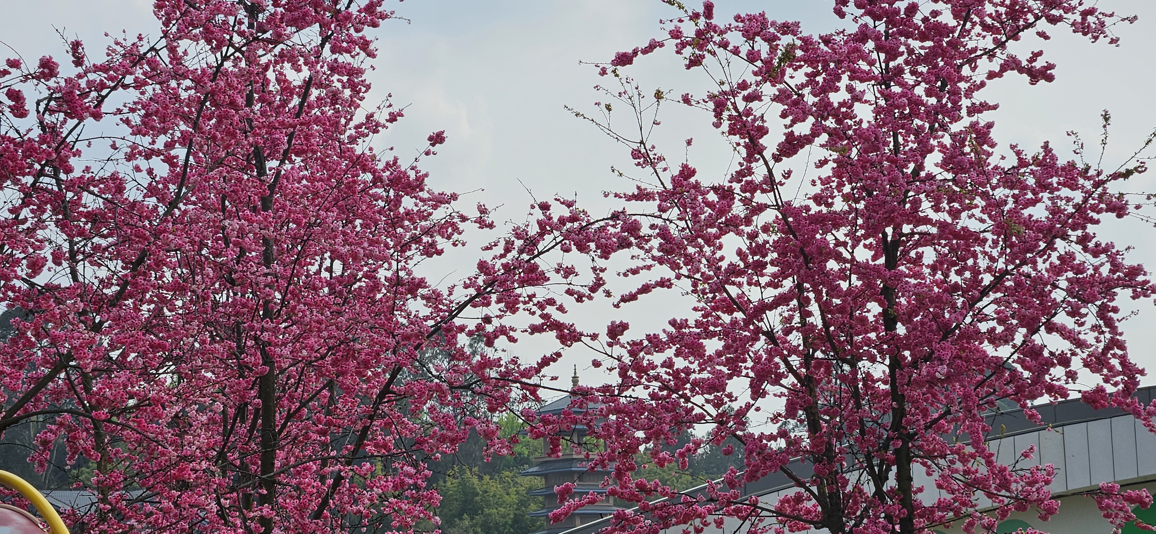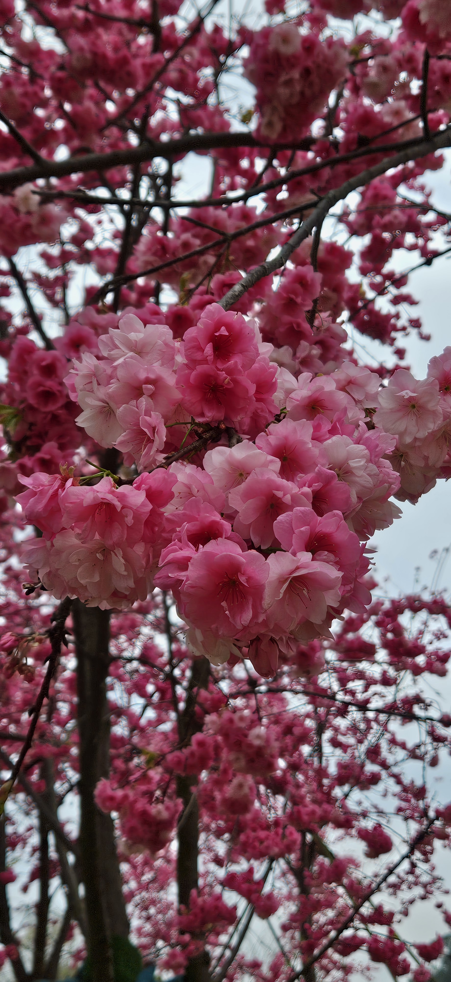 to the star of the show, the trees of pink cherry blossoms, so bright against the grey skies.