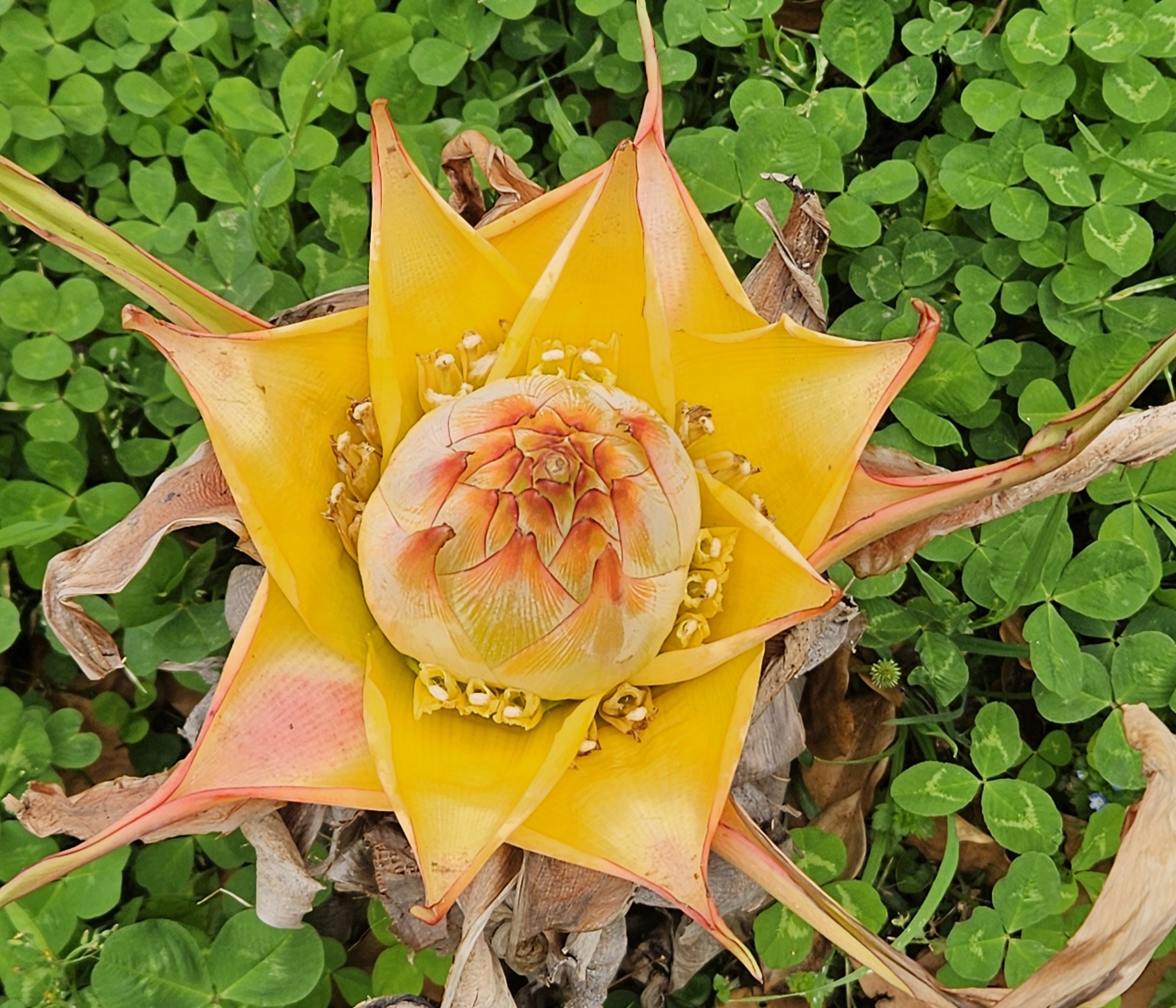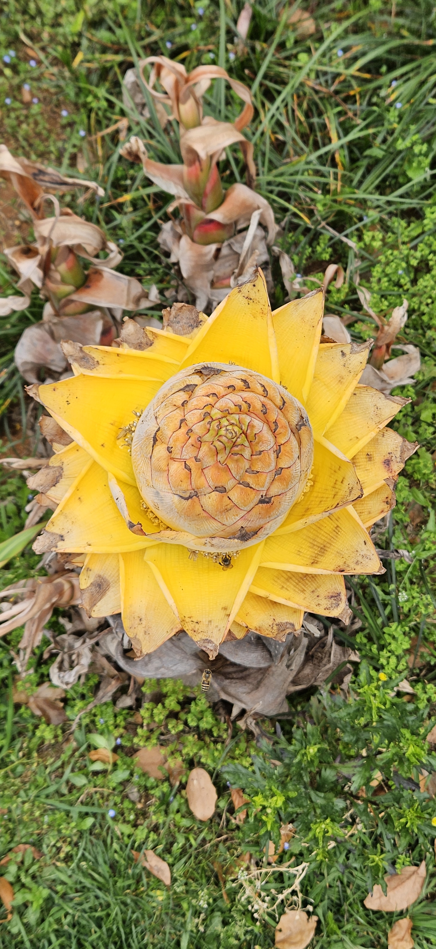 We also saw these odd looking yellow plants, appearing to flower, that we had not seen before. We learned these are called a Golden Lotus Banana; it is a part of the banana family and resembles a lotus blossom (so the name makes sense).