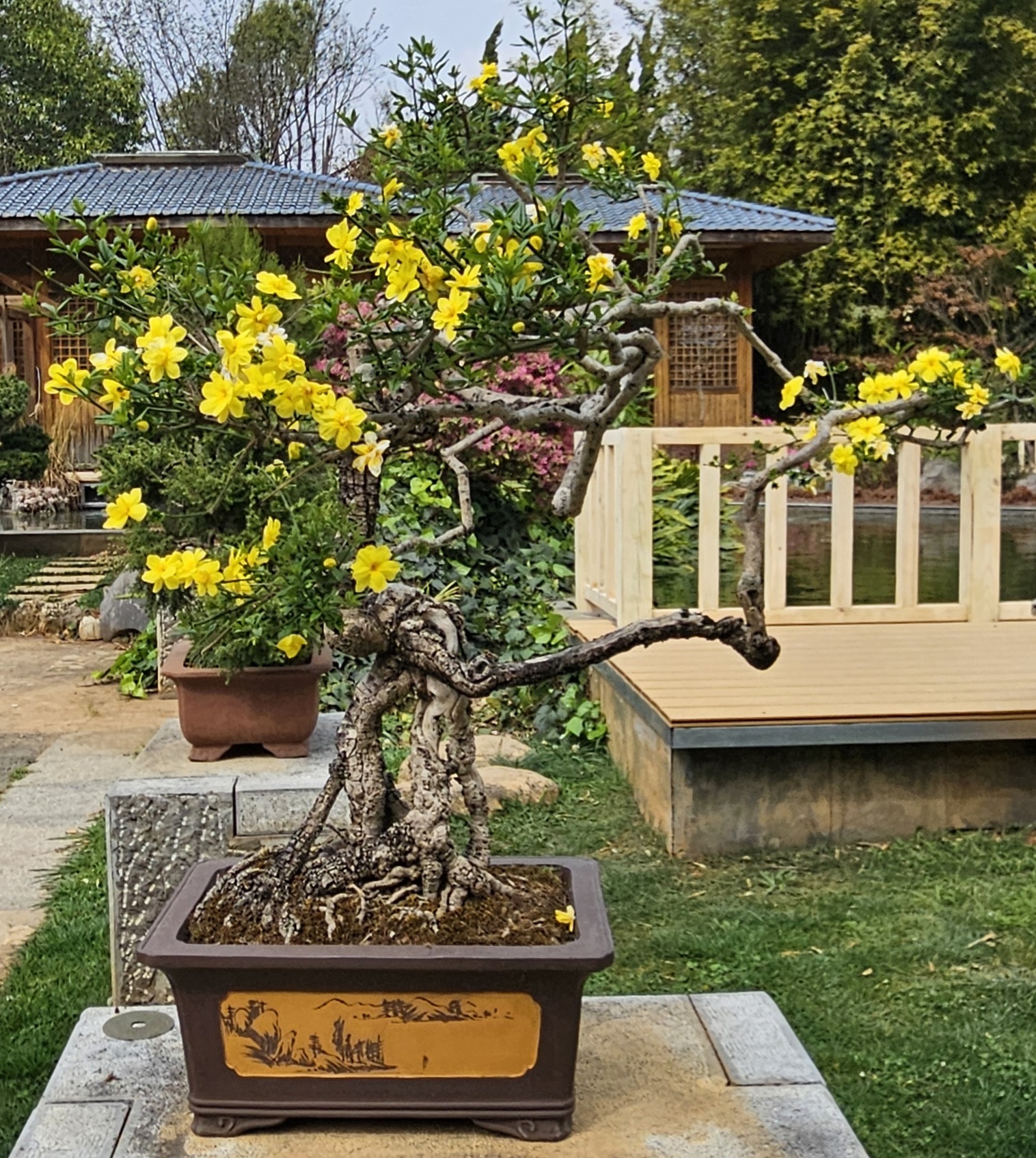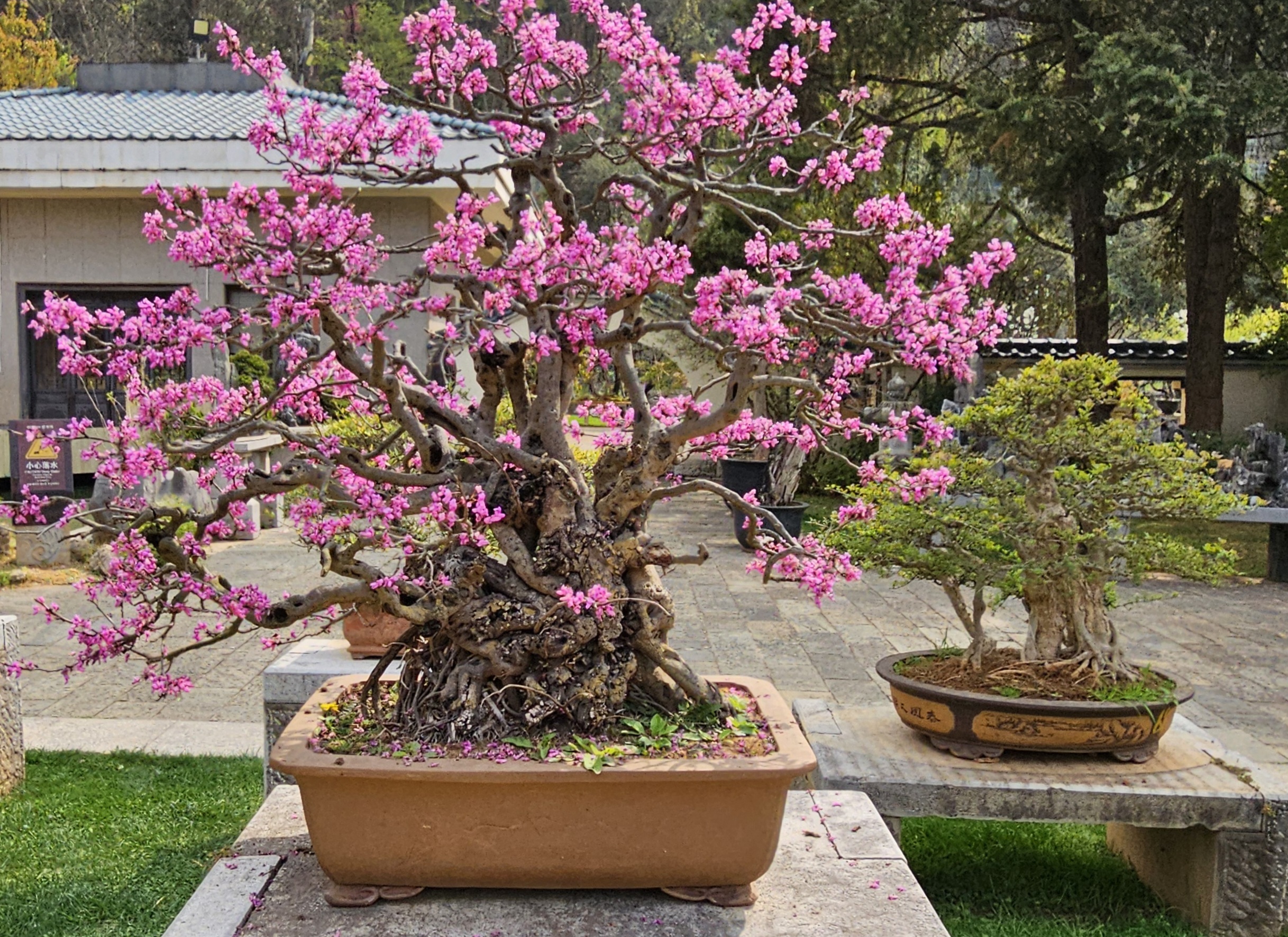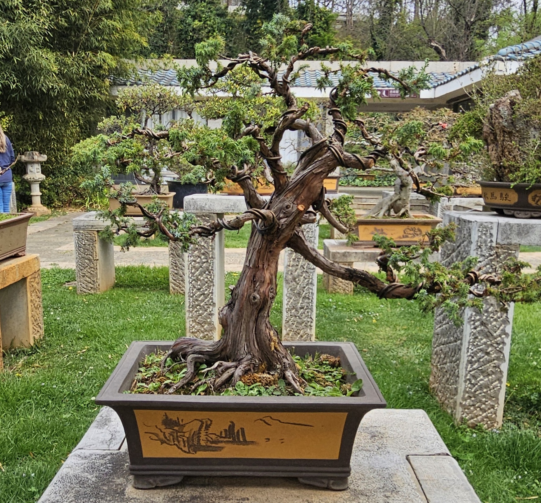 It was so cool and worth the admission price. There were also workers improving the grounds, so it felt that the entry fee was going to a good cause. Not to be outdone, after we left the garden there was a (closed) park restaurant that had its own bonsai.