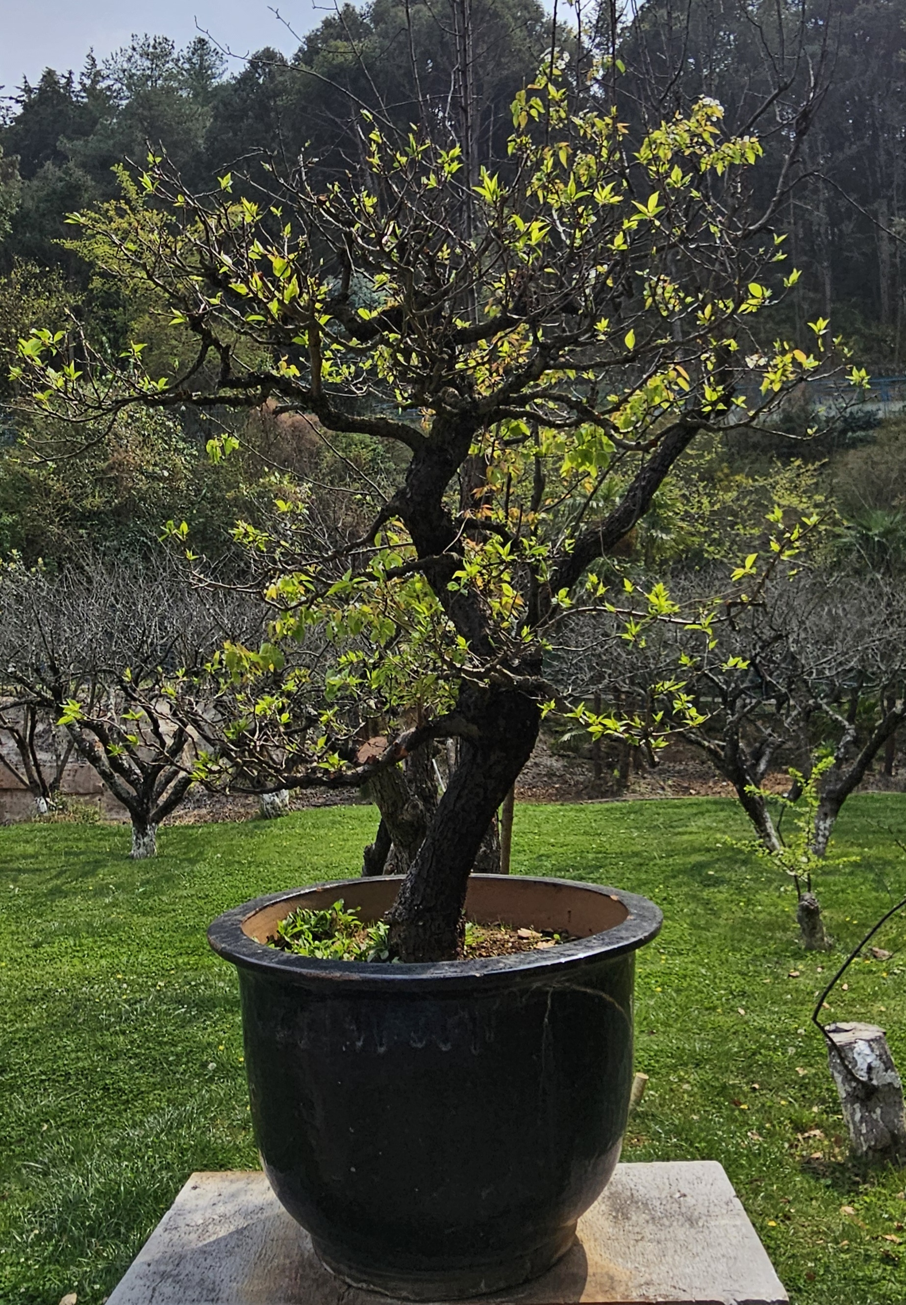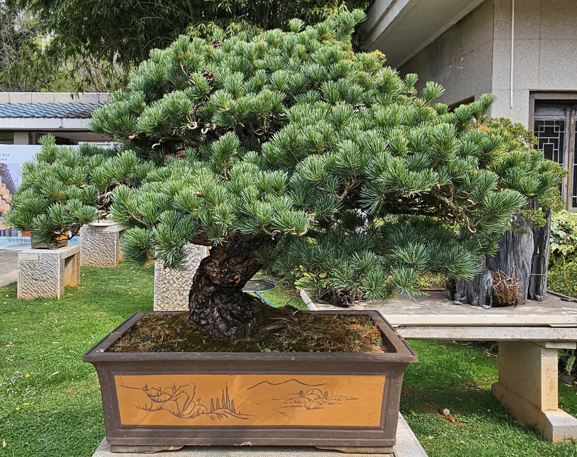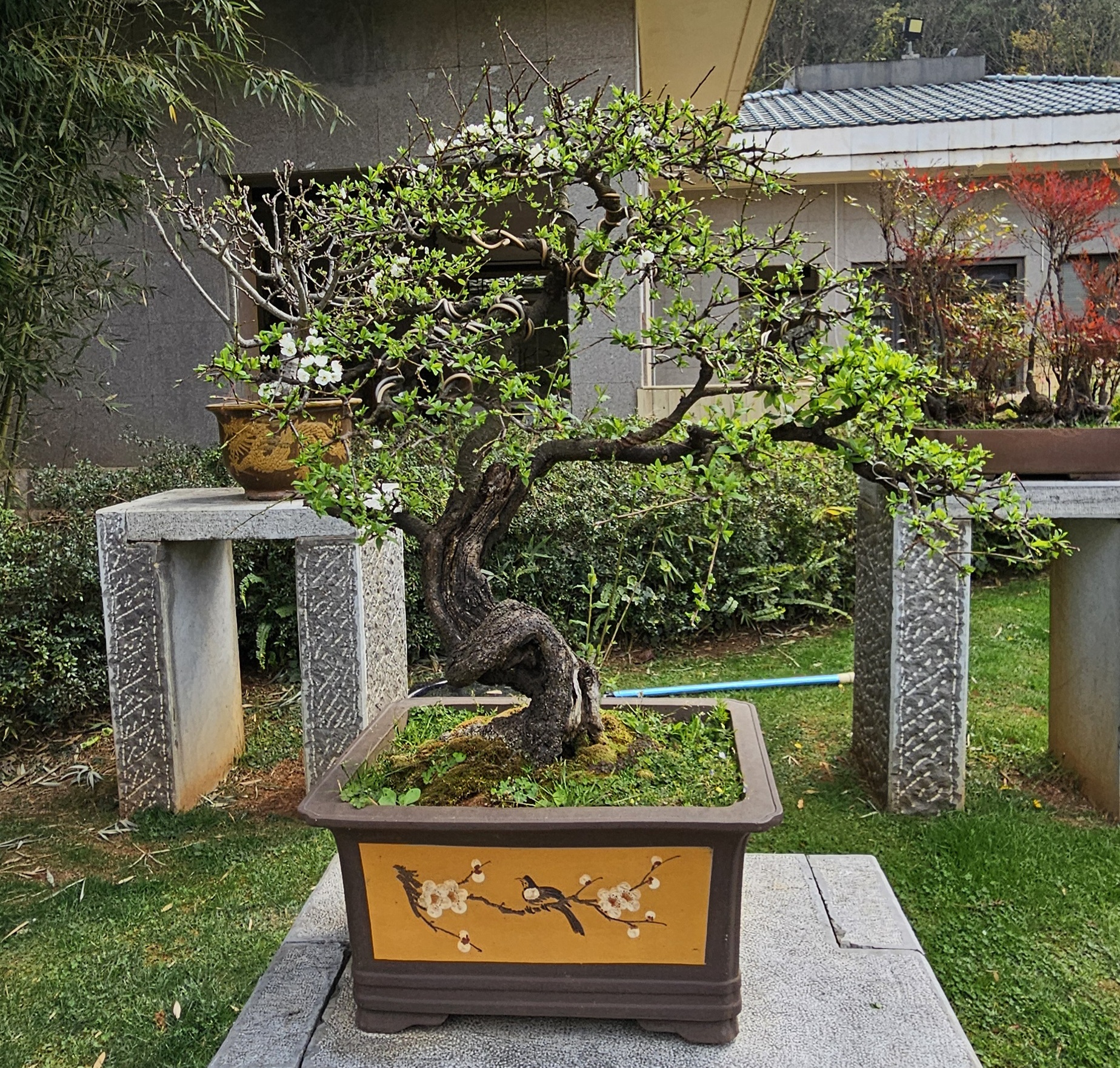 It was so cool and worth the admission price. There were also workers improving the grounds, so it felt that the entry fee was going to a good cause. Not to be outdone, after we left the garden there was a (closed) park restaurant that had its own bonsai.